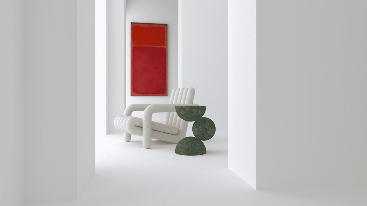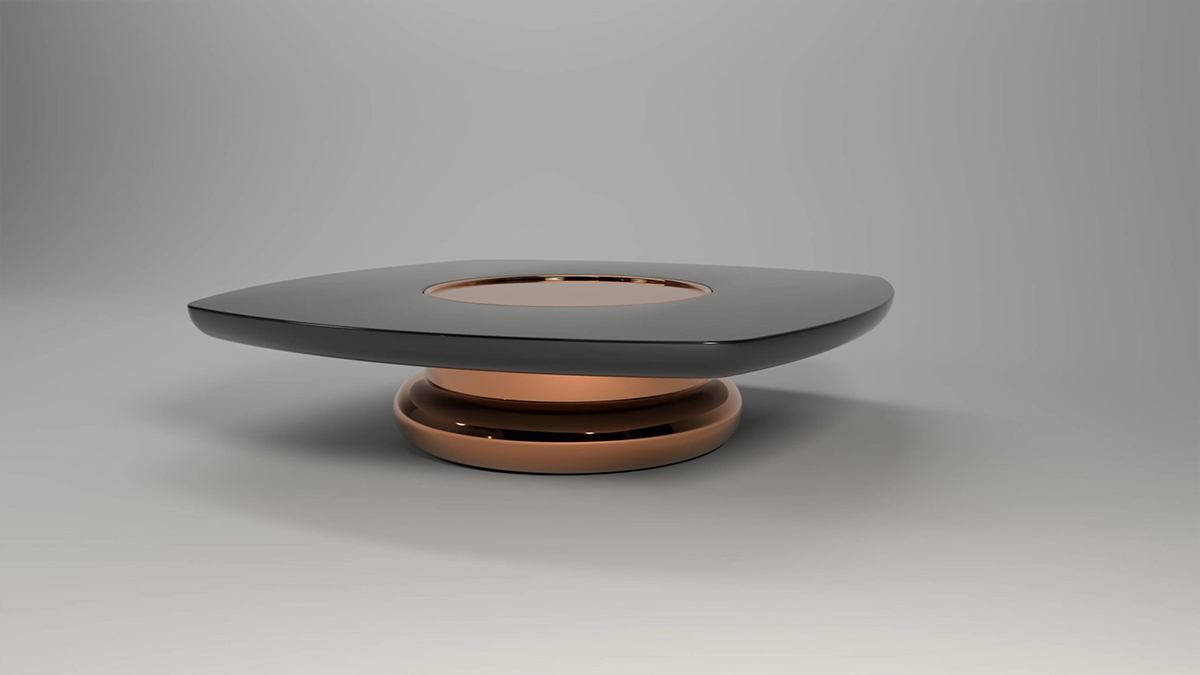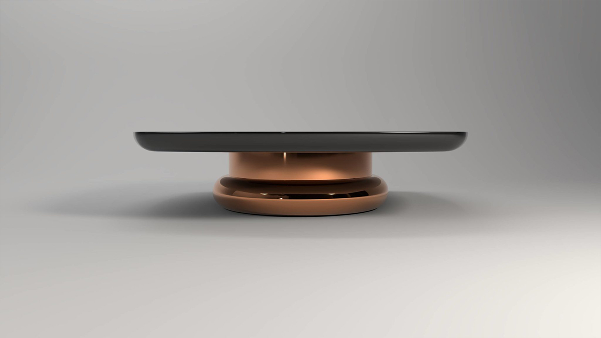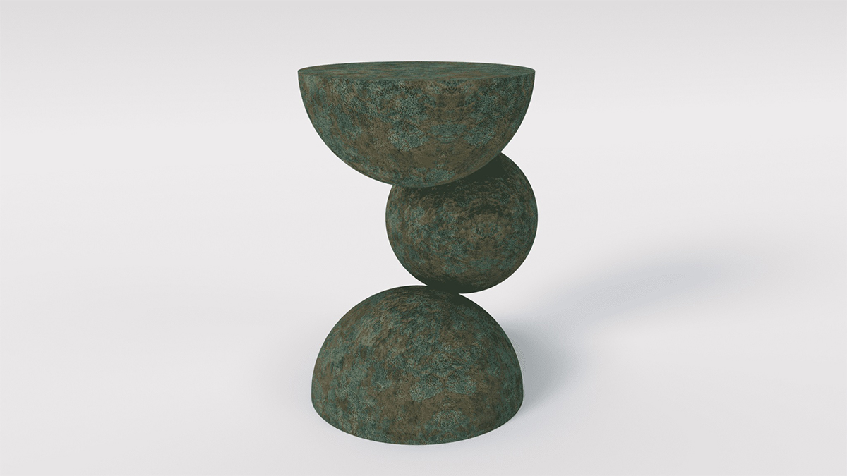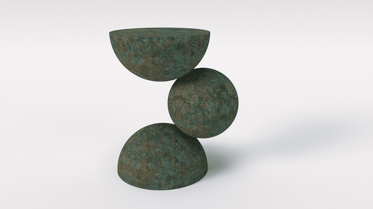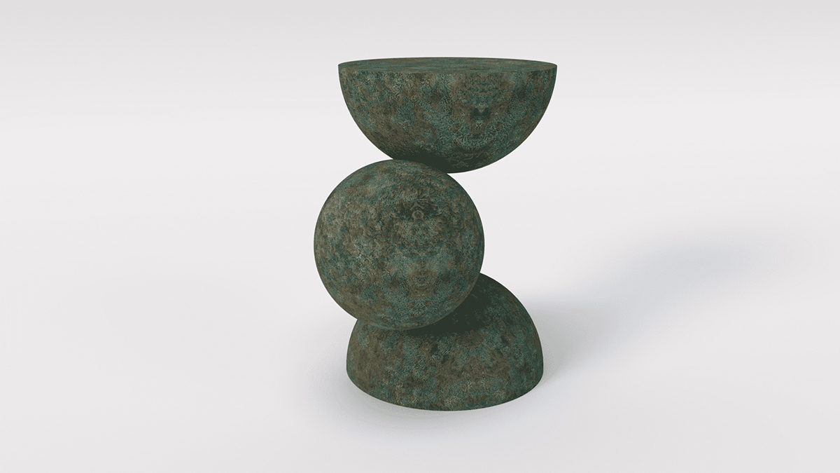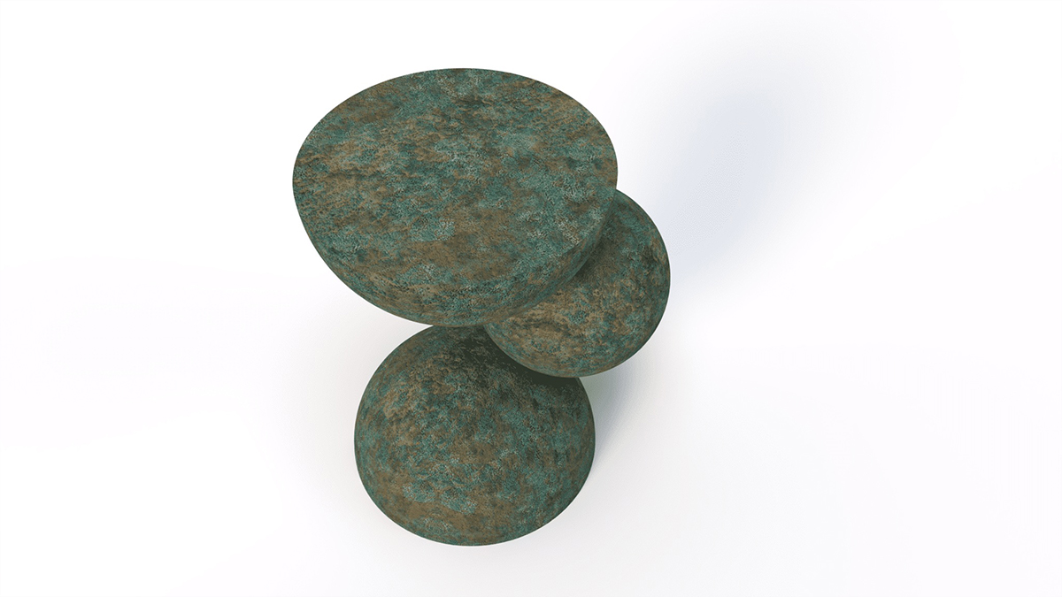 Столик Bubbles смело играет с восприятием реального: сферы и полусферы асимметрично поставлены друг на друга и, кажется, что вот-вот упадут. Но конструкция более чем устойчива: столик выполнен из дерева, покрытого оксидированной сине-зеленой патинированной бронзой.