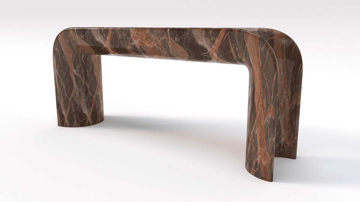 Консоль Arche пластична и живописна: ее сложная монолитная форма полностью вырезана из мрамора Ombra del Caravaggio. Драматический колорит, словно с полотен яркого представителя итальянского барокко, добавляет Arche харизмы.