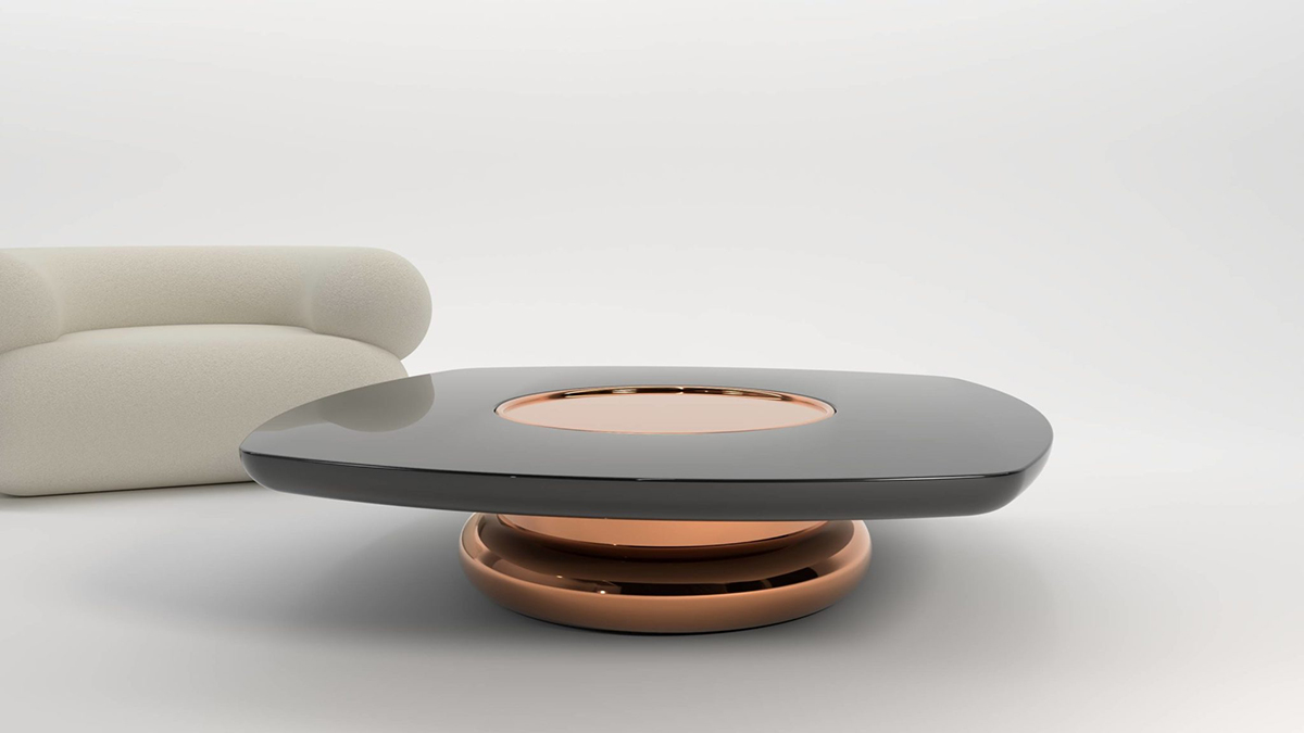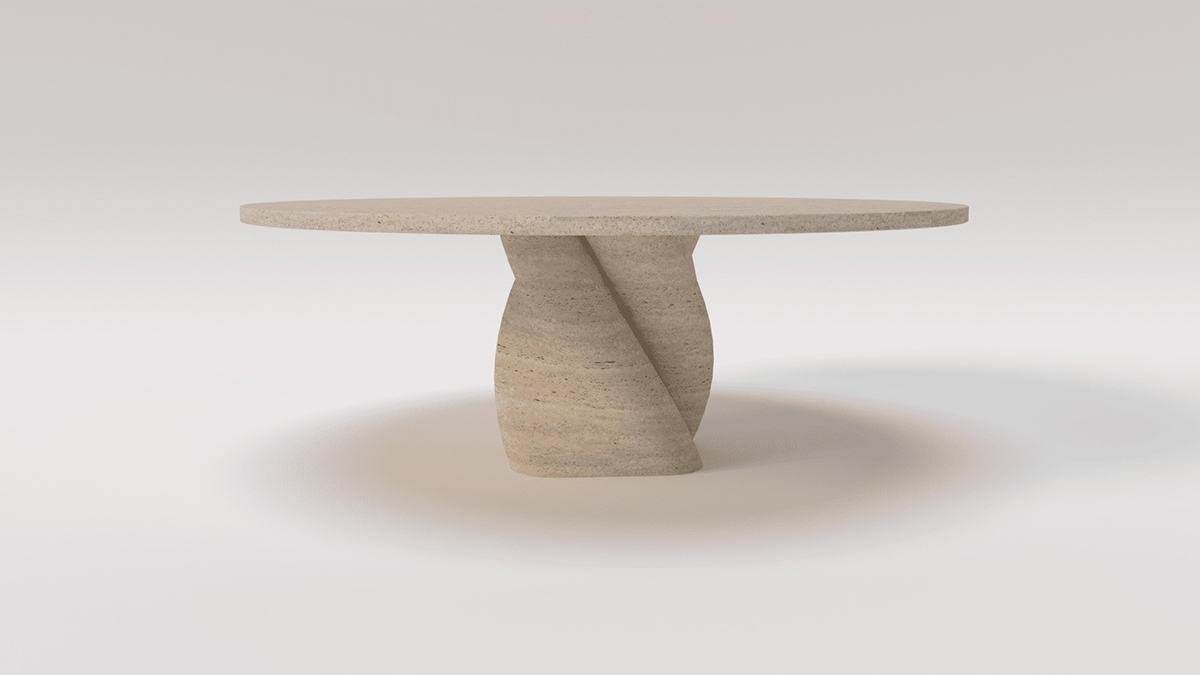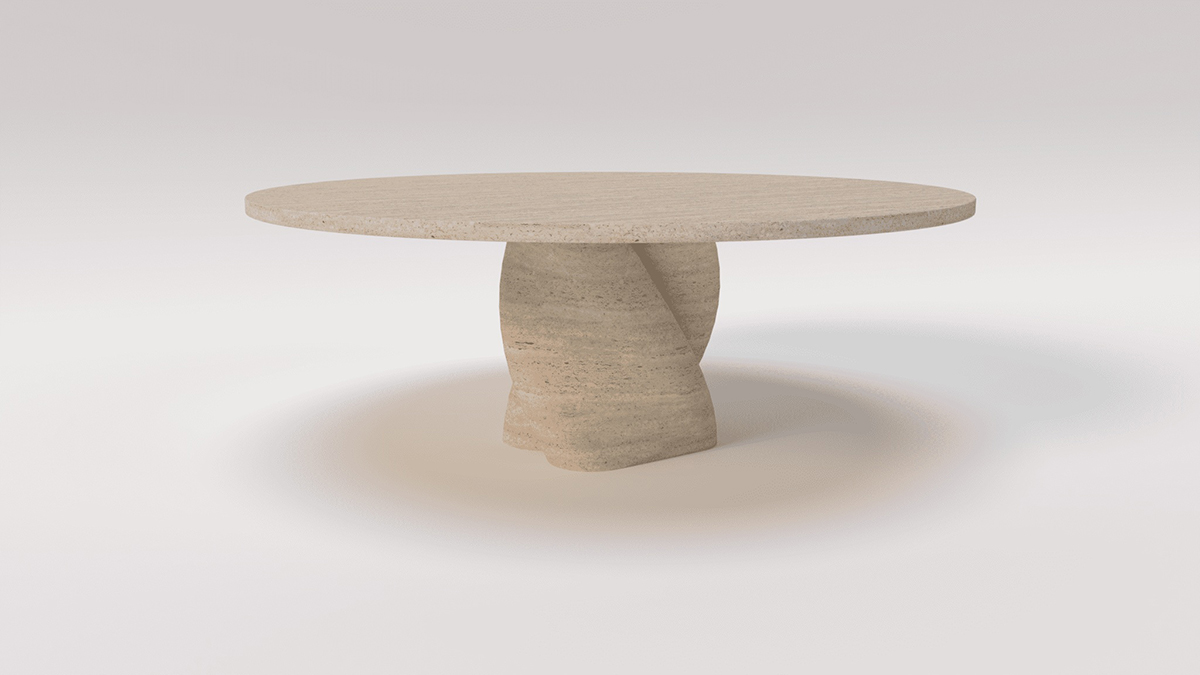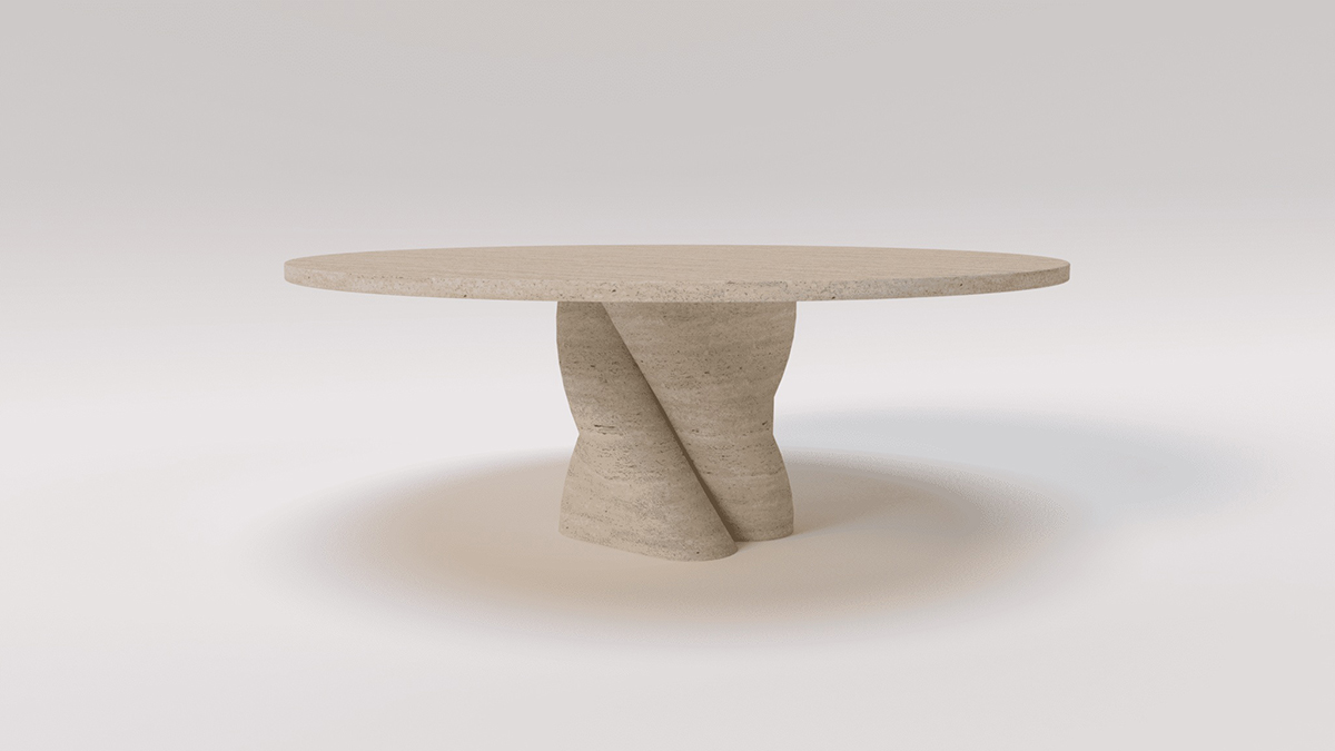 Посмотрите на круглый столEnlacée — кажется, что это смысловое продолжение консоли Voluptas: словно основание закружилось и слилось воедино.