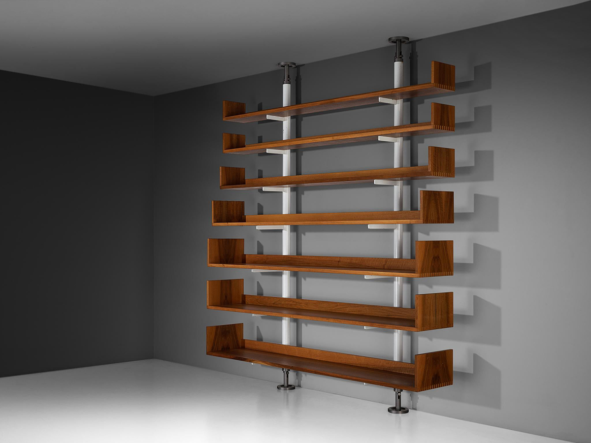Подвесной светильник Mod. 5258, изготовленный компанией Venini в 1950 году, появился в эпоху, когда художественным руководителем компании был Карло Скарпа, создававший вневременные творения с помощью утонченных техник и исключительного стиля.БИБЛИОТЕКА ИЗ МЕТАЛЛА И ГРЕЦКОГО ОРЕХА
