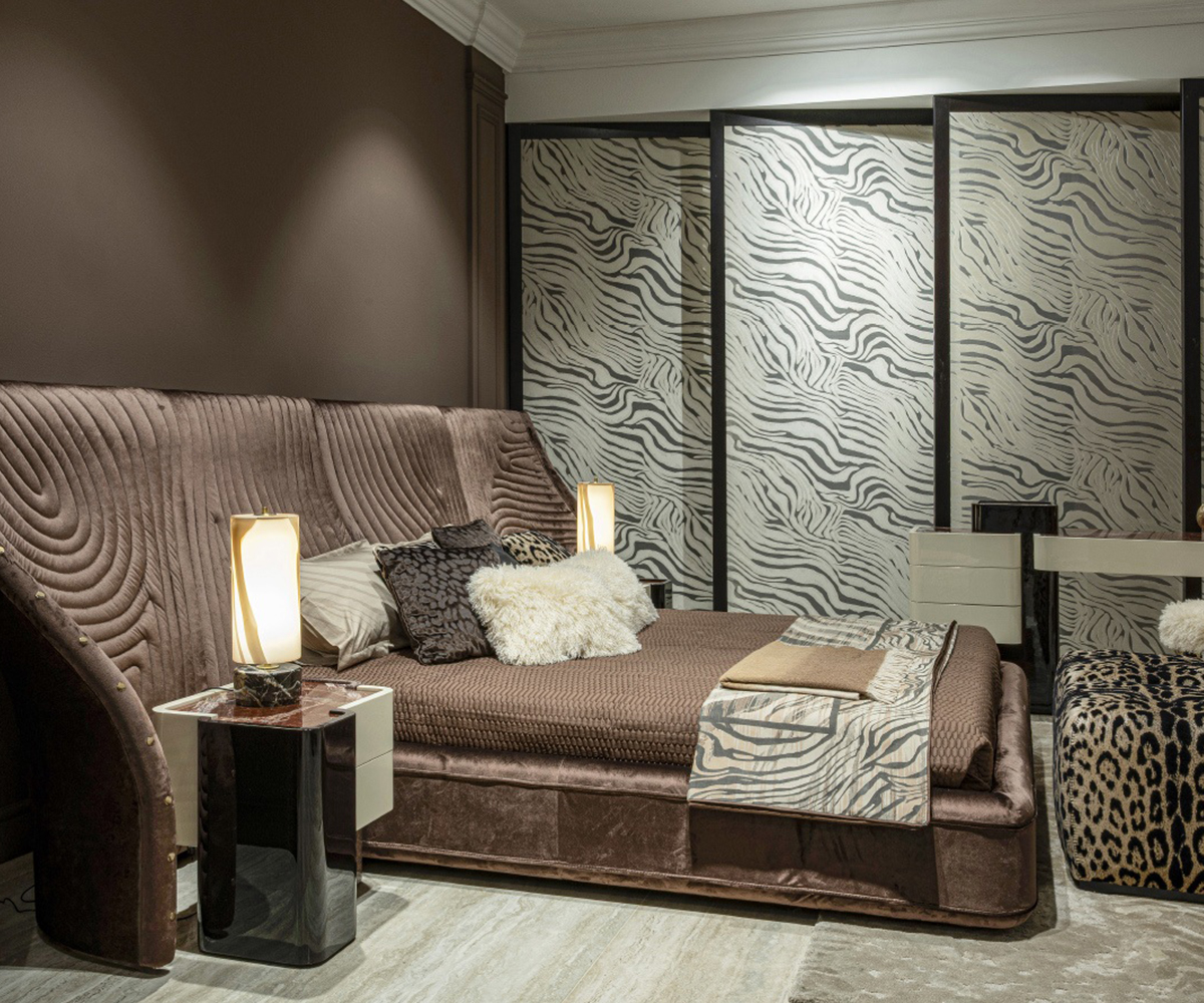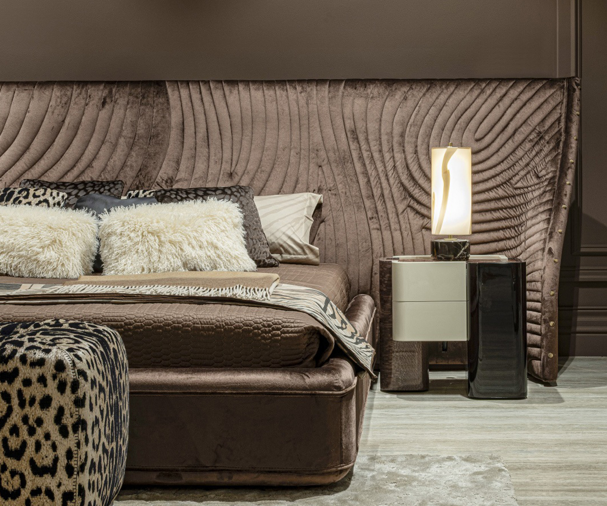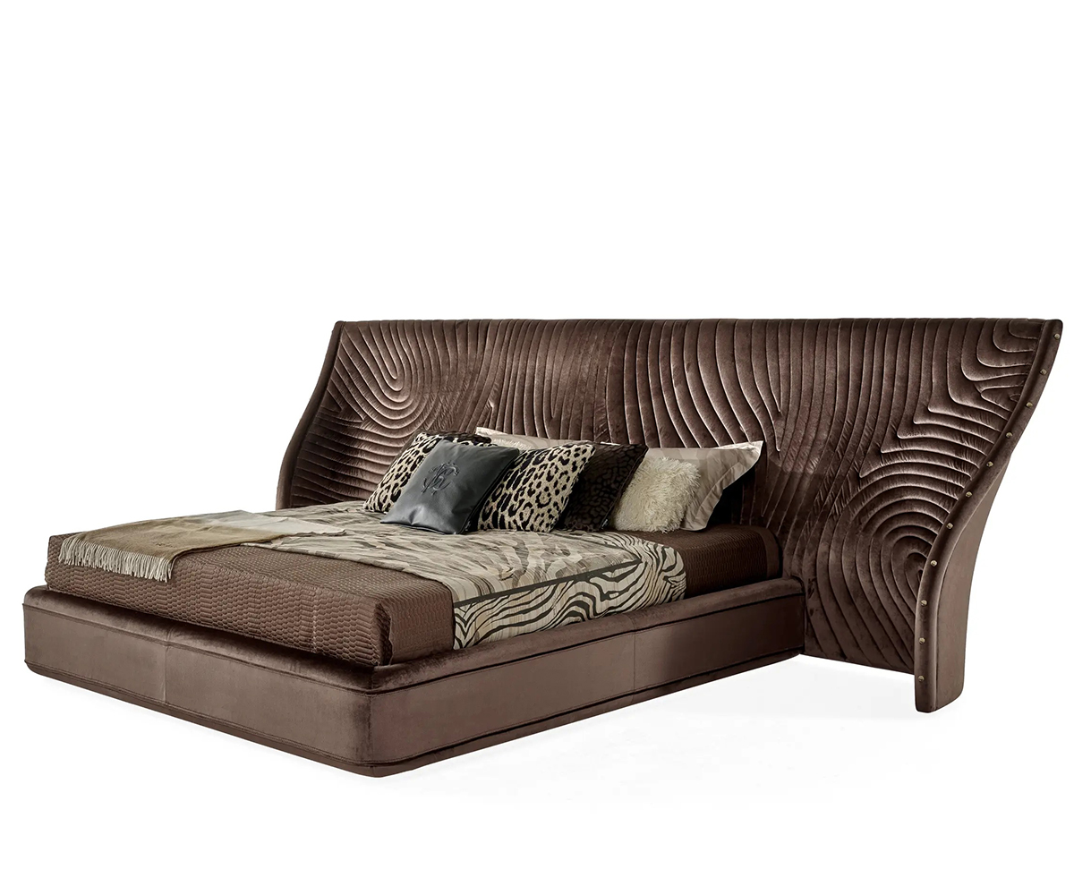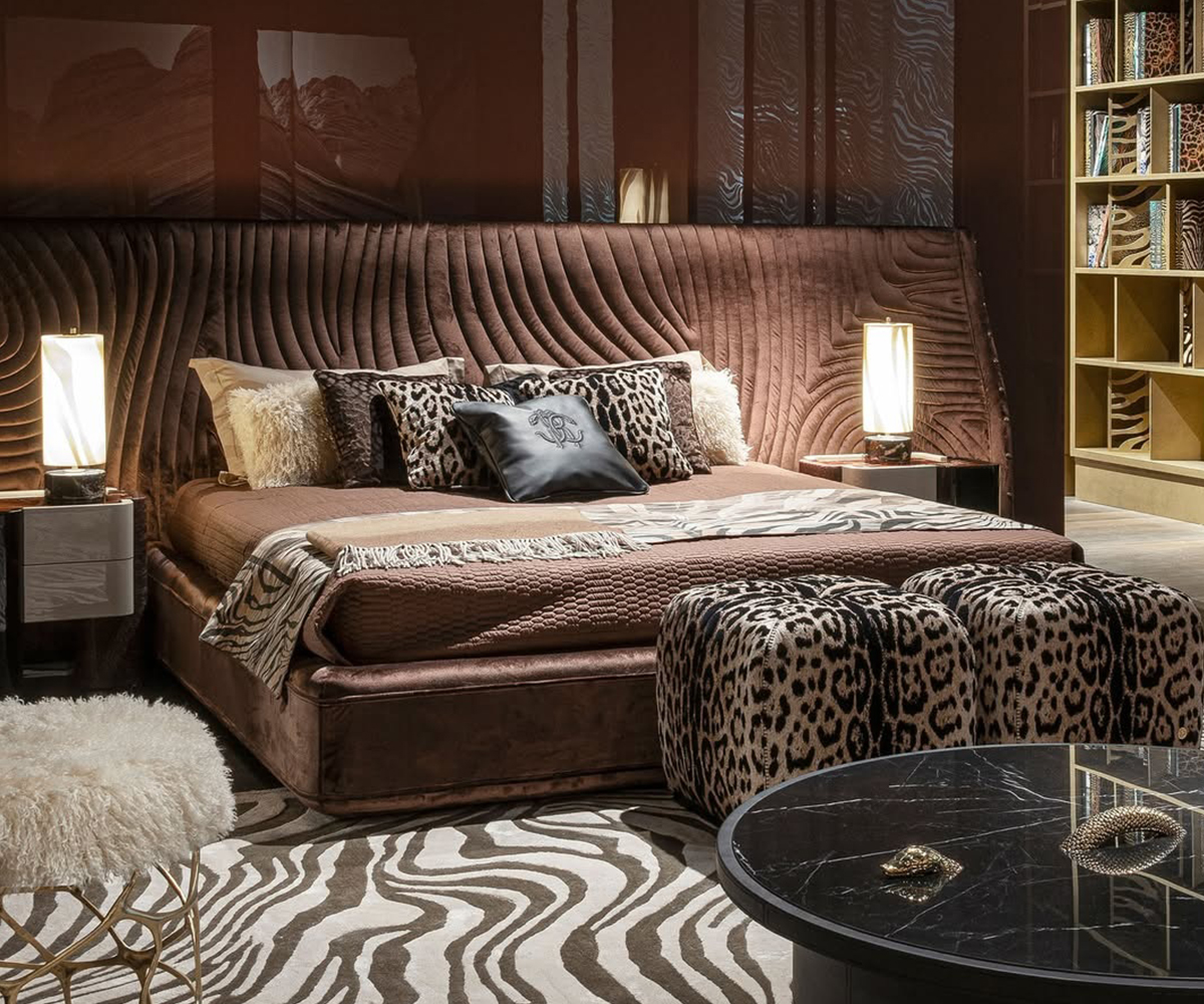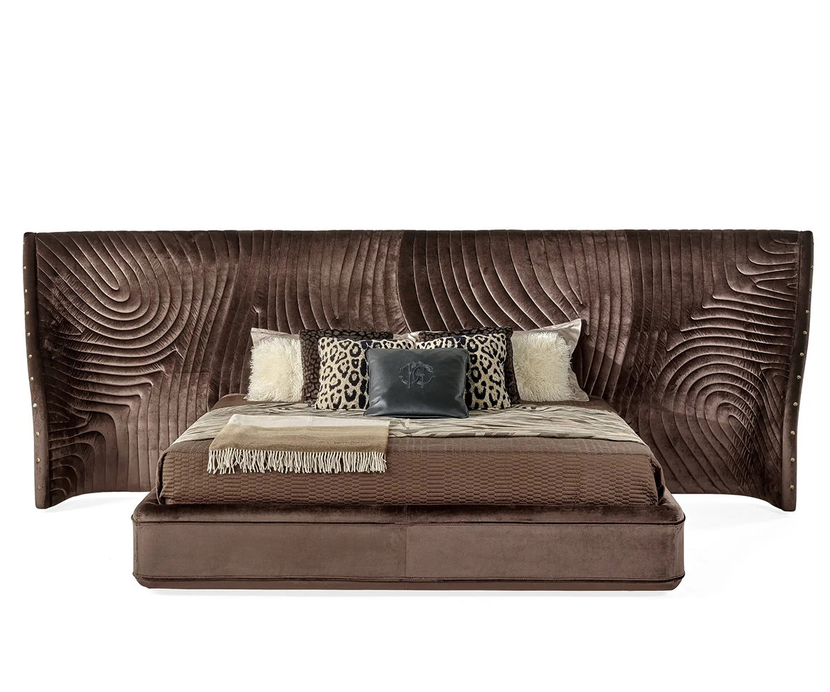 Серия Nevada определяет коллекцию бренда 2025 года. Роскошная кровать — смелая и обволакивающая. Характерная особенность предмета — внушительное изголовье, дополненное фирменной стежкой «Дюна» — узором, вдохновленным пустынным пейзажем. Дополнительные декоративные металлические элементы и латунная пластина с монограммой Roberto Cavalli на каркасе кровати тонко подчеркивают идентичность бренда.