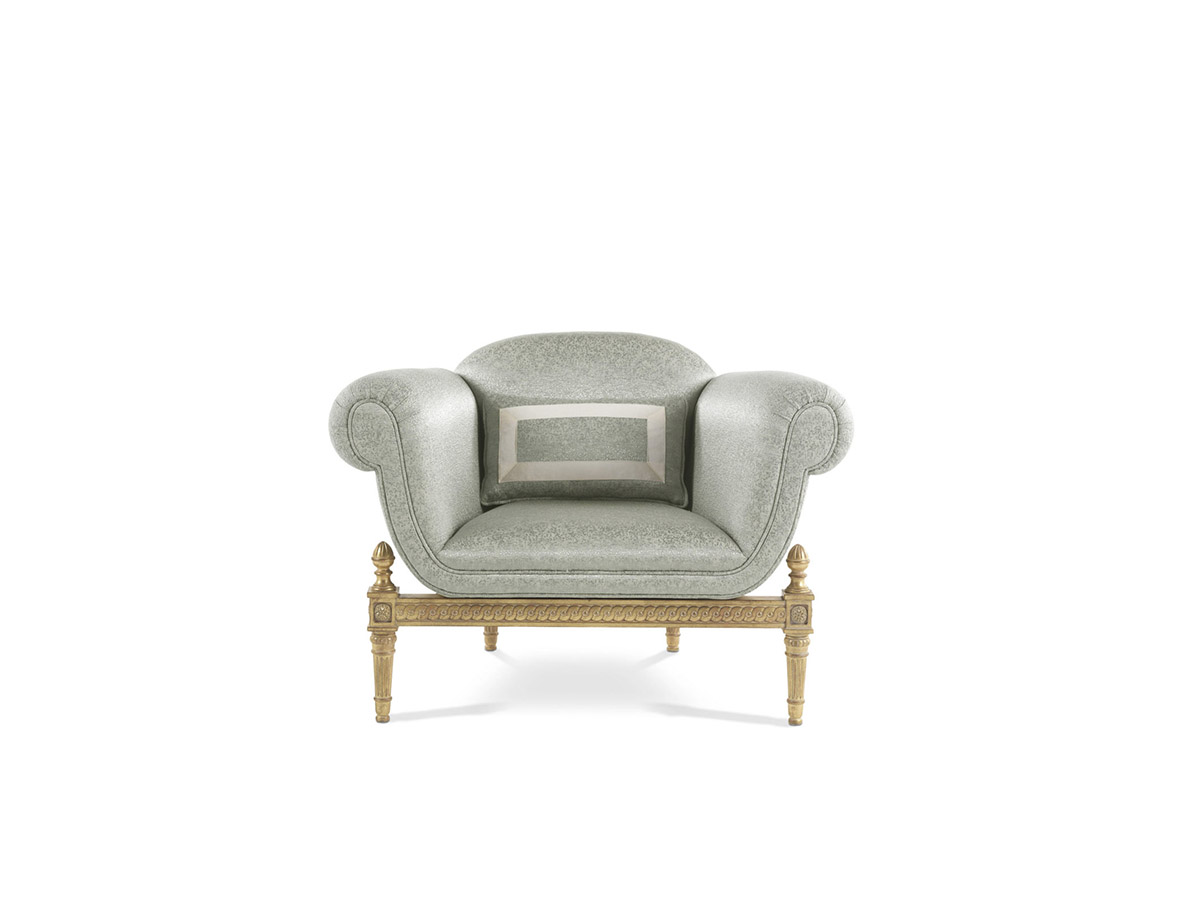 Светлая и элегантная гостиная воплощает в жизнь мечту клиента, влюбленного в красоту и искусство. Отдохнуть вечером вдвоем приятно на созданном специально для проекта комфортном диване с декорированными ромбовидной строчкой подлокотниками. Уединиться и почитать книгу – в эргономичном кресле Miky (Gianfranco Ferrè Home), гармонично вписавшемся в классический интерьер.