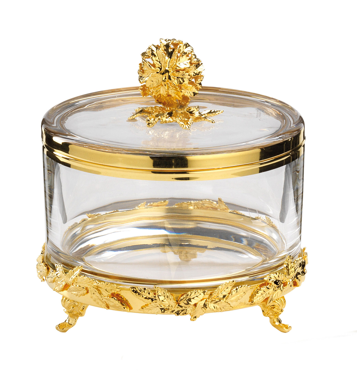 Почему бы не подать пармезан, горгонзолу или бри в изящной сырнице с хрустальным куполом и на ножках? Лаконичный по форме купол, выполненный из свинцового хрусталя, контрастирует с детальным и ажурным декором из бронзы в золотой отделке.
