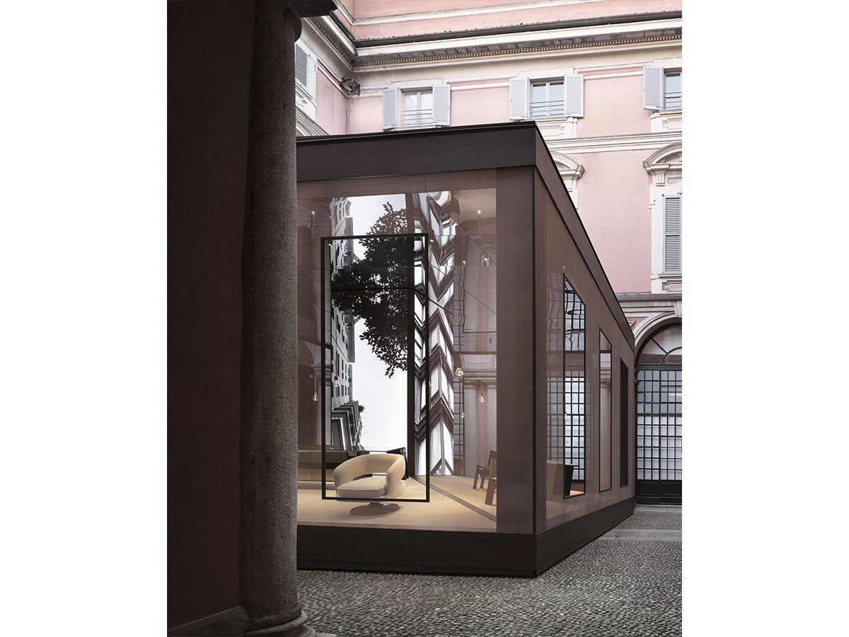 Милан стал свидетелем рождения и роста Molteni&C в постоянном диалоге с ведущими деятелями архитектуры и дизайна: Джо Понти, Бруно Морассутти и Анджело Манджаротти, Альдо Росси и Herzog & de Meuron. Инсталляция прославляет это наследие, превращая пространство в метафору города. Место, где дизайн — это культура, а дом — подлинное выражение образа жизни, балансирующее память и современность.