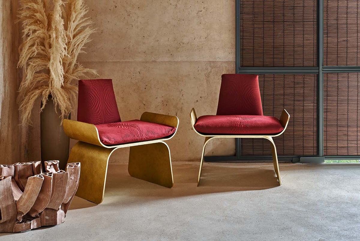 Культовое кресло Sioraf в новой обивке выглядит совершенно иначе: сложный цитроновый оттенок раскрывается в фактурной обивке и красиво дополняет металлическое основание.