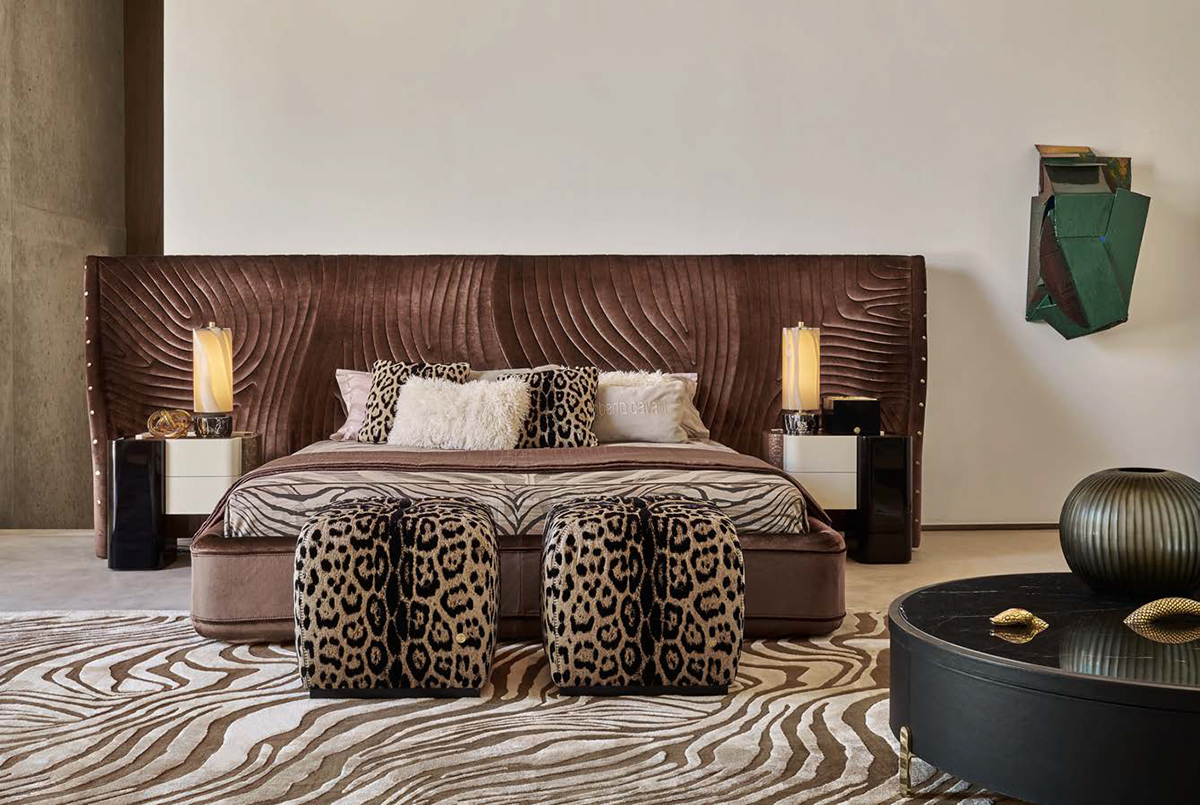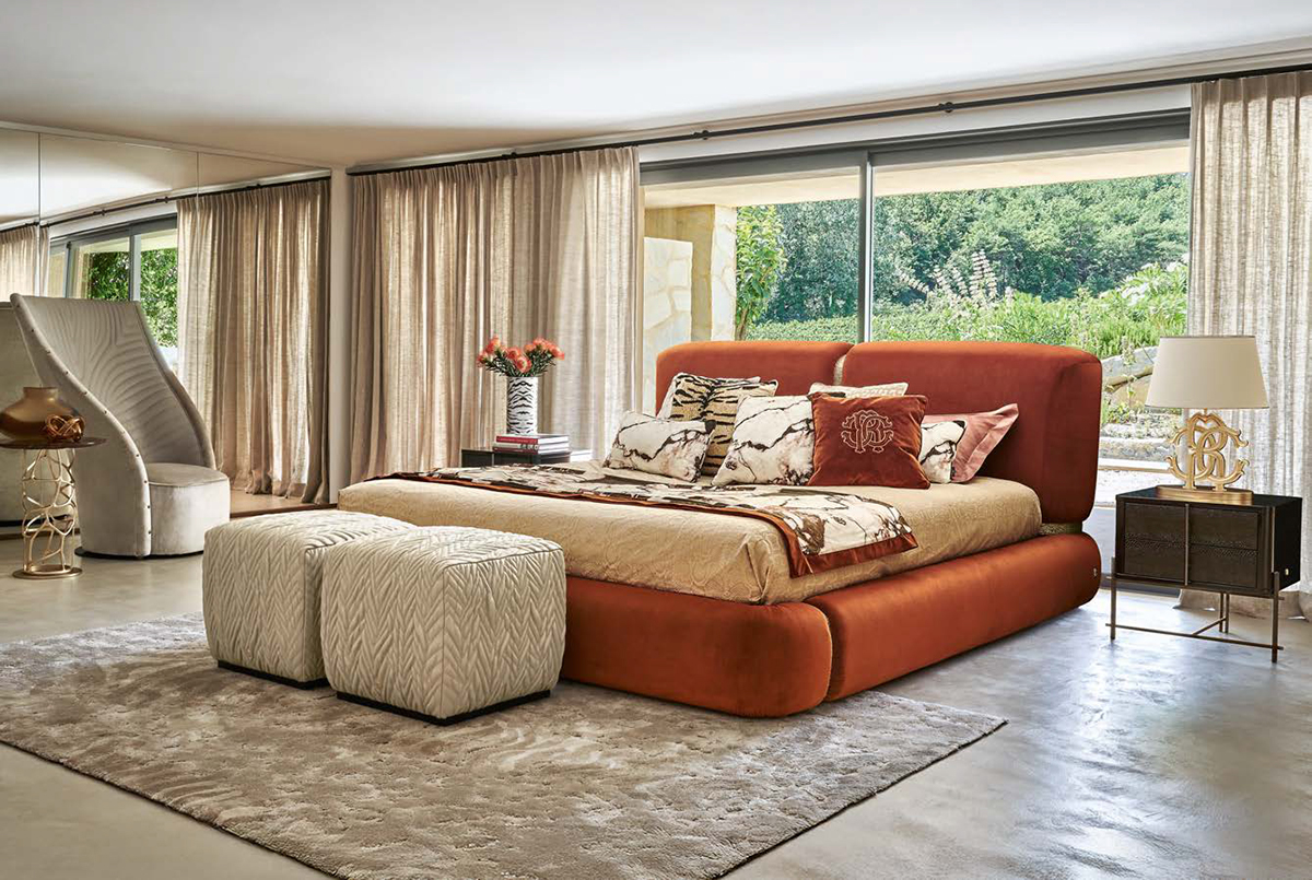 Кровать Toulou в пряном осеннем оттенке — в центре внимания спальни. Она прекрасно сочетается с новинкой — креслом Nevada и культовыми предметами коллекции: пуфами Waddi и настольной лампой Logo.Новая коллекция Savage Serenity — это про возвеличивание индивидуальности, энергии и самой сути Roberto Cavalli — бесстрашный манифест жизни.