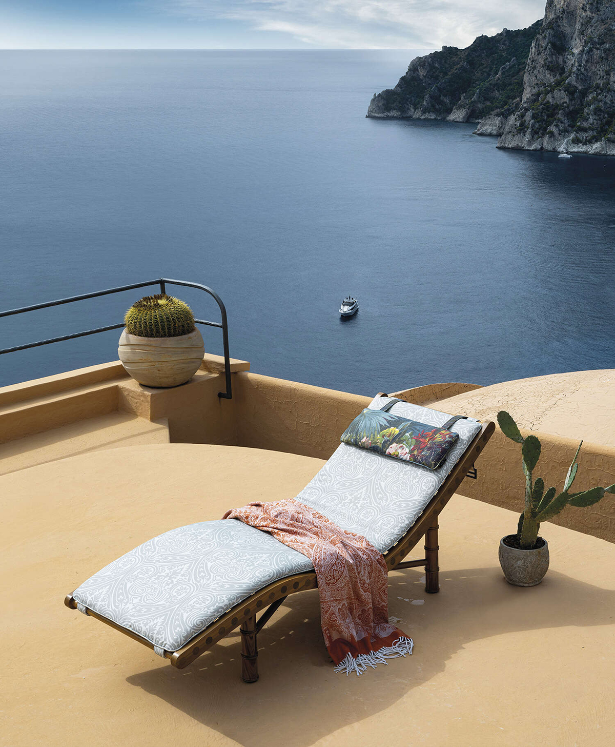 Представьте себе синее море, живописную природу и вечную красоту итальянского острова Капри. Роскошный 5-звездочный отель Punta Tragara, расположенный на вершине горы Фаральони, с видом на залив Марина-Пиккола и Скольо-делле-Сирене стал местом для презентации новой outdoor-коллекции ETRO Home Interiors.