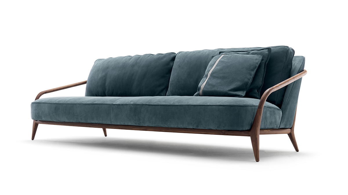 Pierre меняет представление о традиционном дизайне диванов. Широкие накладные подлокотники слегка вогнутой формы будто обнимают сиденье. Объемность подушек сиденья, подлокотников и спинки балансируется интересным оформлением основания: образованный вогнутой структурой зазор добавляет визуальной легкости и невесомости. А оттенок ночного неба завораживает своей глубиной.
