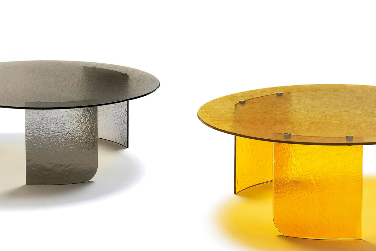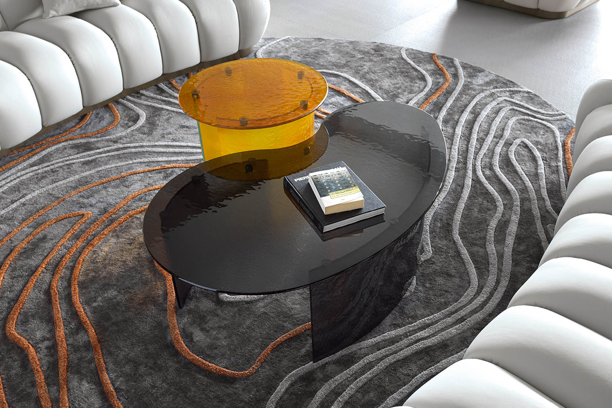 Журнальные и боковые столики Tresor из новой коллекции Giorgio Collection выполнены из фактурного цветного стекла. Стекло, пропуская естественный свет сквозь насыщенный желтый цвет, озаряет комнату цветным светом, усиливая игру акцентов. Смело, сочно, стильно.