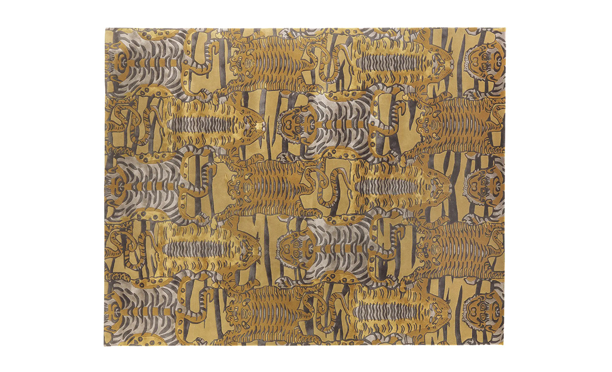 Желтый можно ввести в интерьер точечно, например, с помощью сценографичного ковра Tingri, на котором изображены тибетские тигры.