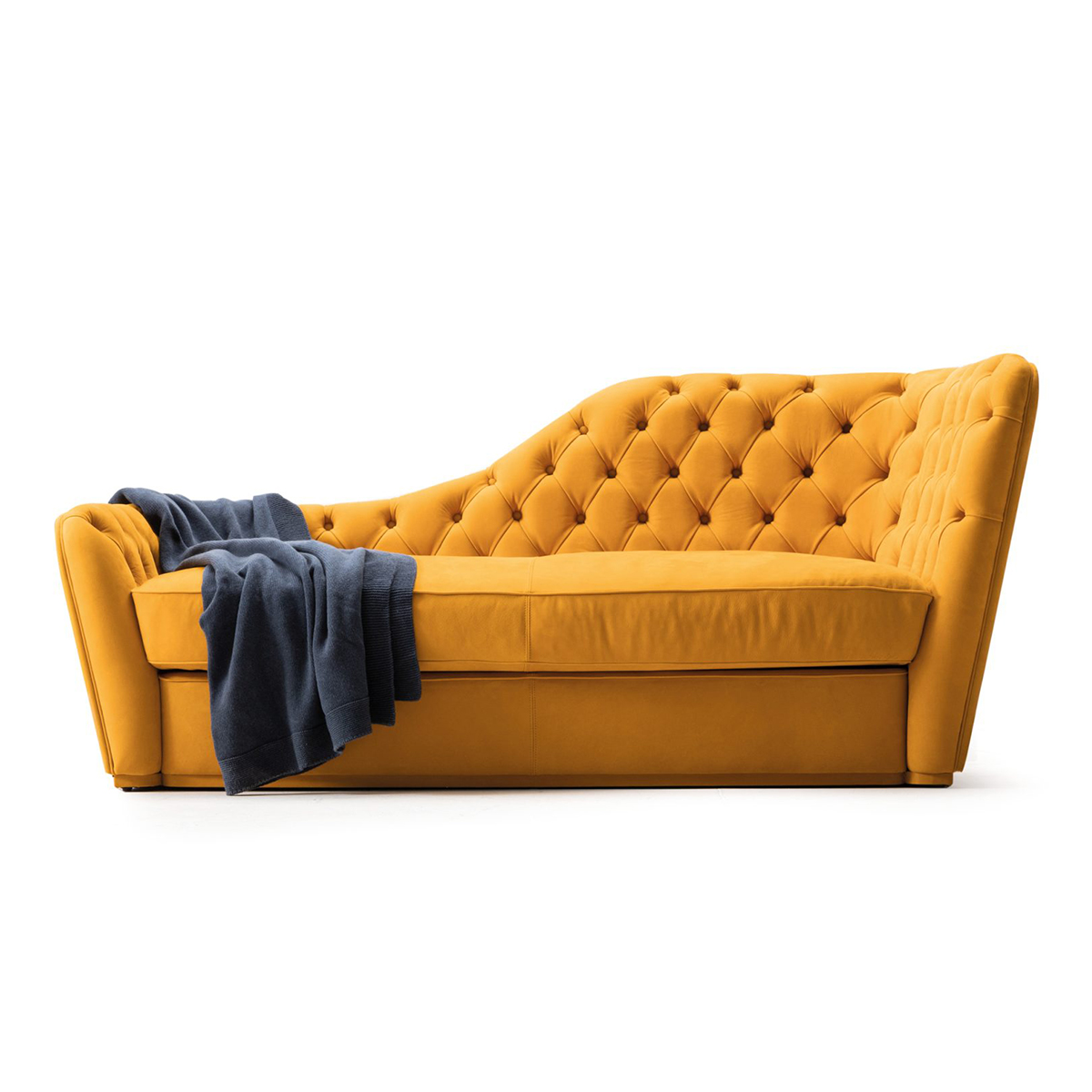 Асимметричный диван Angie, спроектированный Андреа Пинори и Джорджио Балестри, добавит в интерьер спальни или гостиной игривости и теплоты за счет оригинальной формы и приятного теплого цвета, напоминающего солнце Тосканы.