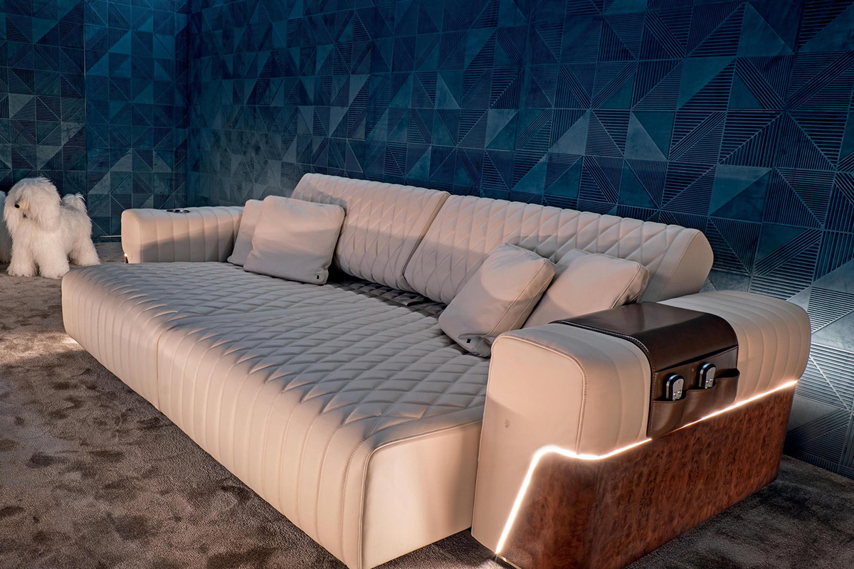 Отличное решение представляет итальянский бренд метароскоши Visionnaire с коллекцией мебели для домашнего кинотеатра Brubeck Radica. Элегантные и гостеприимные, они станут прекрасной альтернативой мягкой зоне в гостиной.