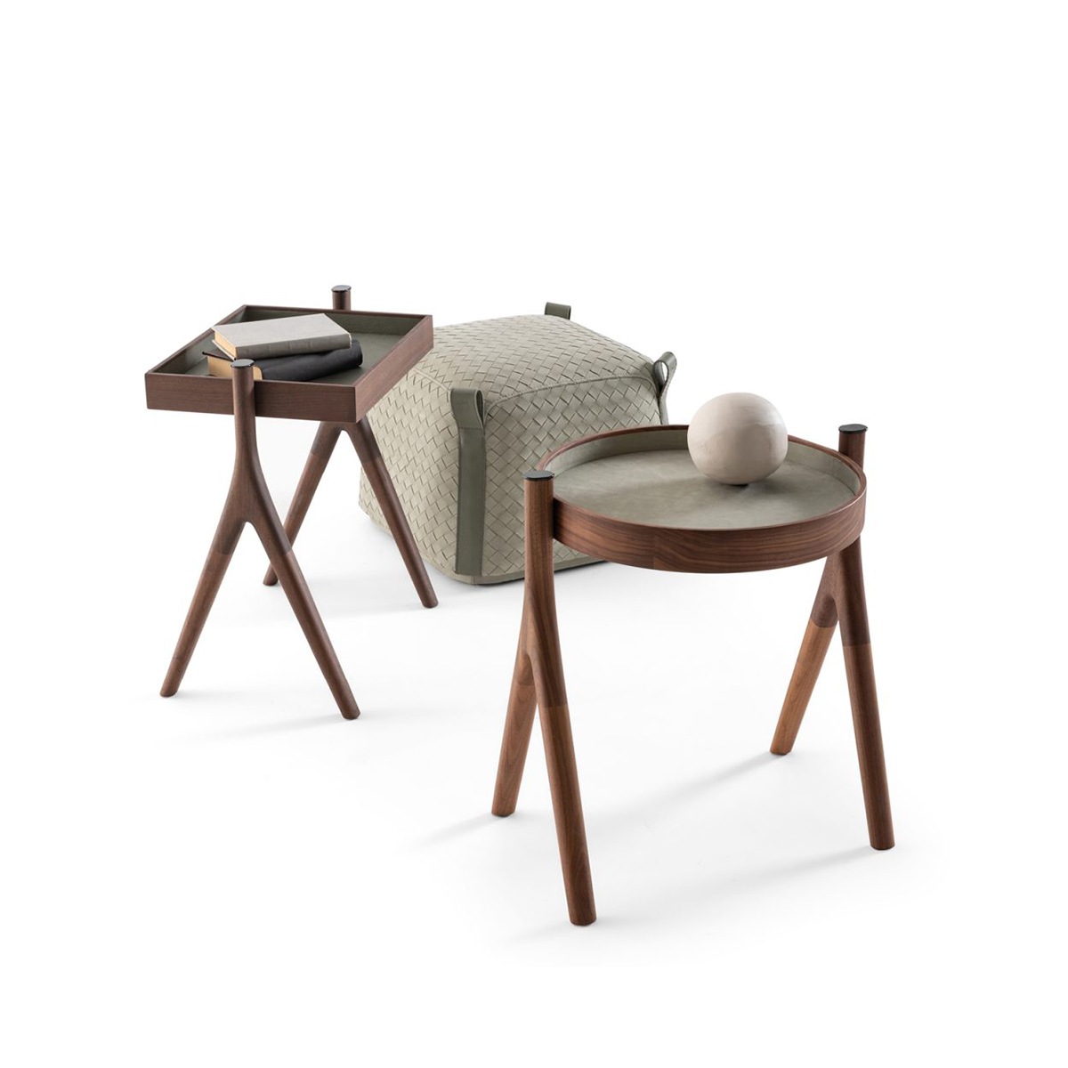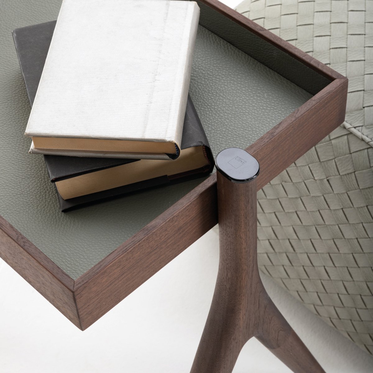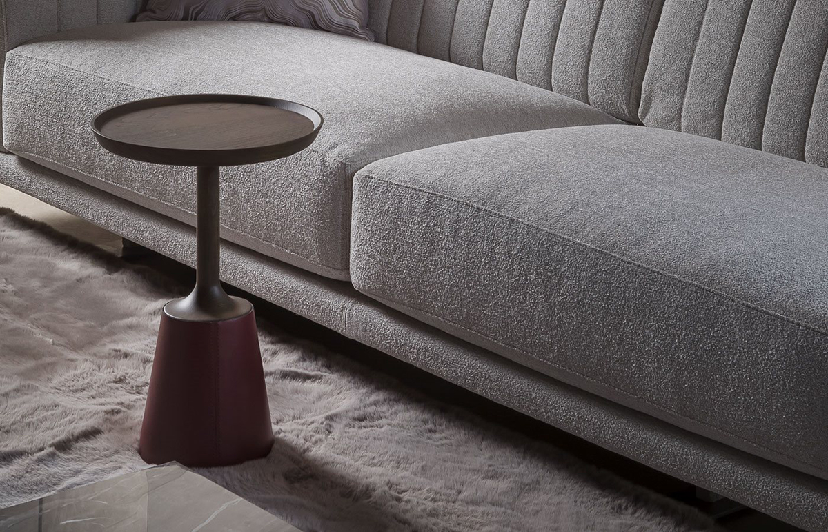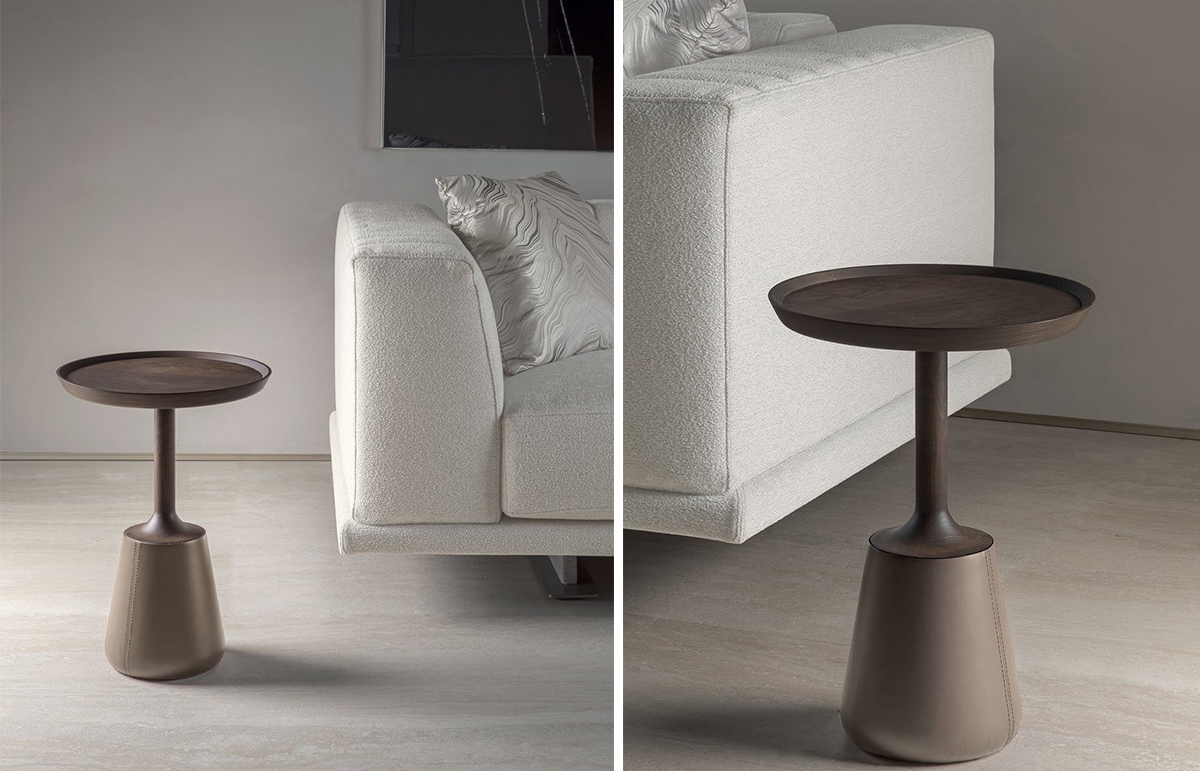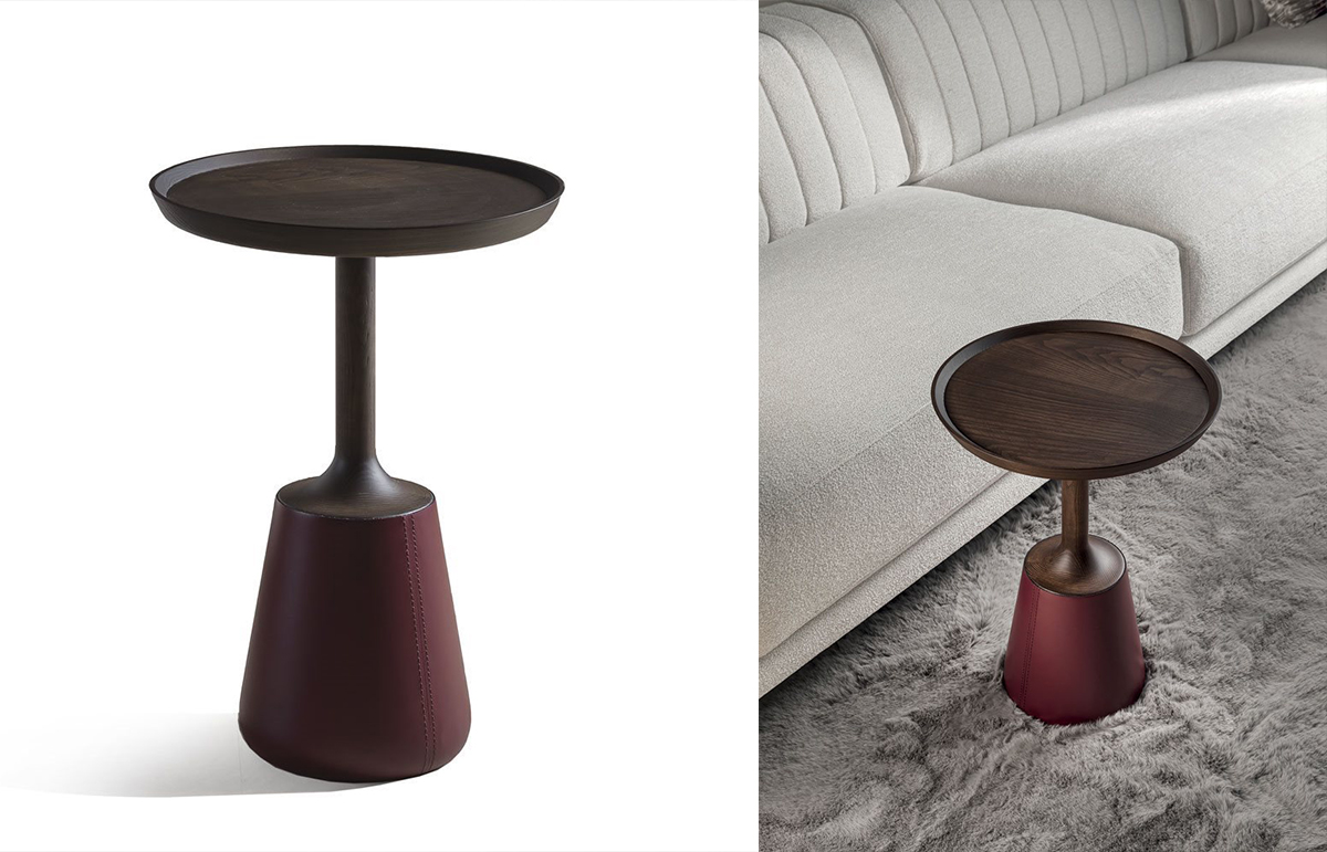 Столик Zed очаровывает простотой формы и сущностью материалов: он полностью выполнен из точеного массива дерева, а основание обито натуральной кожей в близком к дереву оттенке.