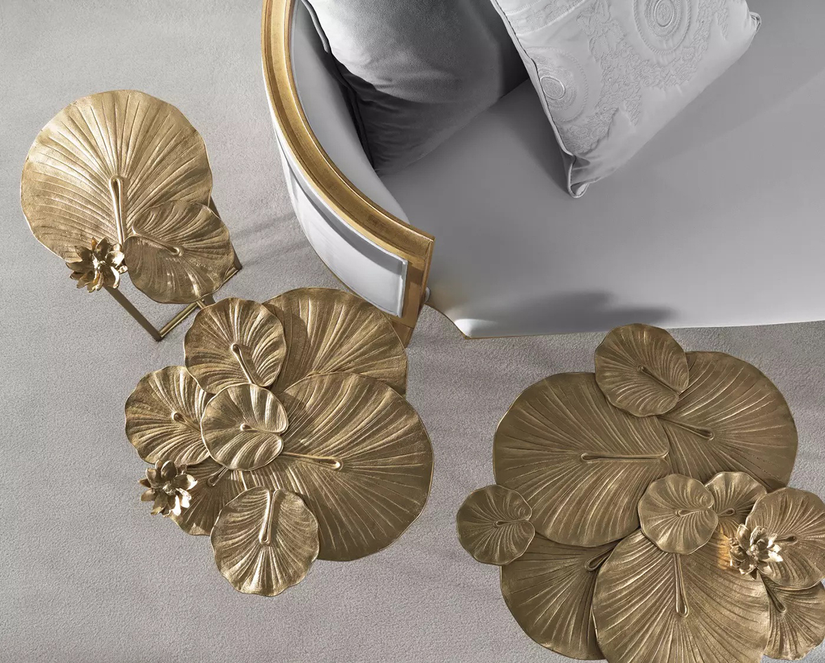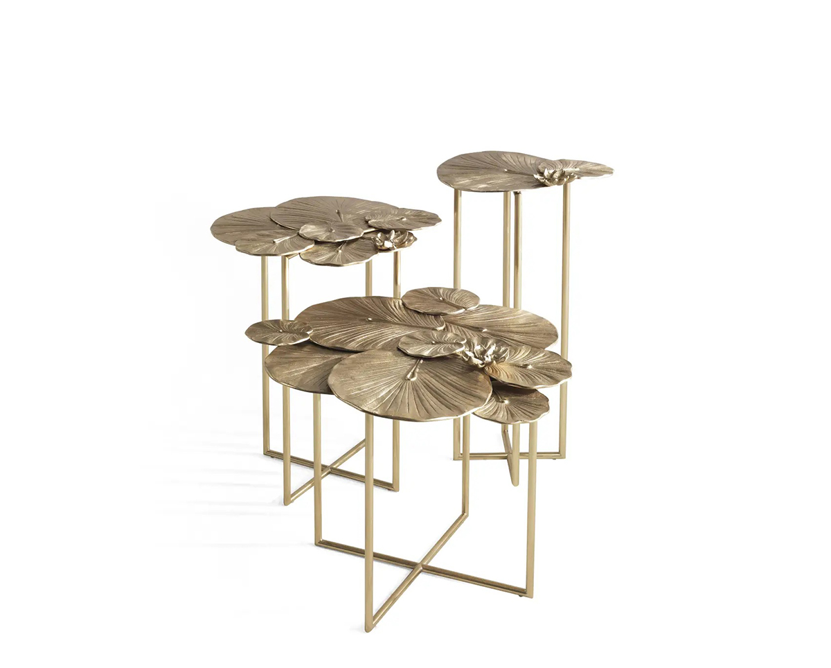 Красота природы и искусства трансформируется в изысканный декоративный столик Monet. Сценографичная столешница в виде листьев, излюбленных Клодом Моне кувшинок сбалансирована строгой геометрией основания.