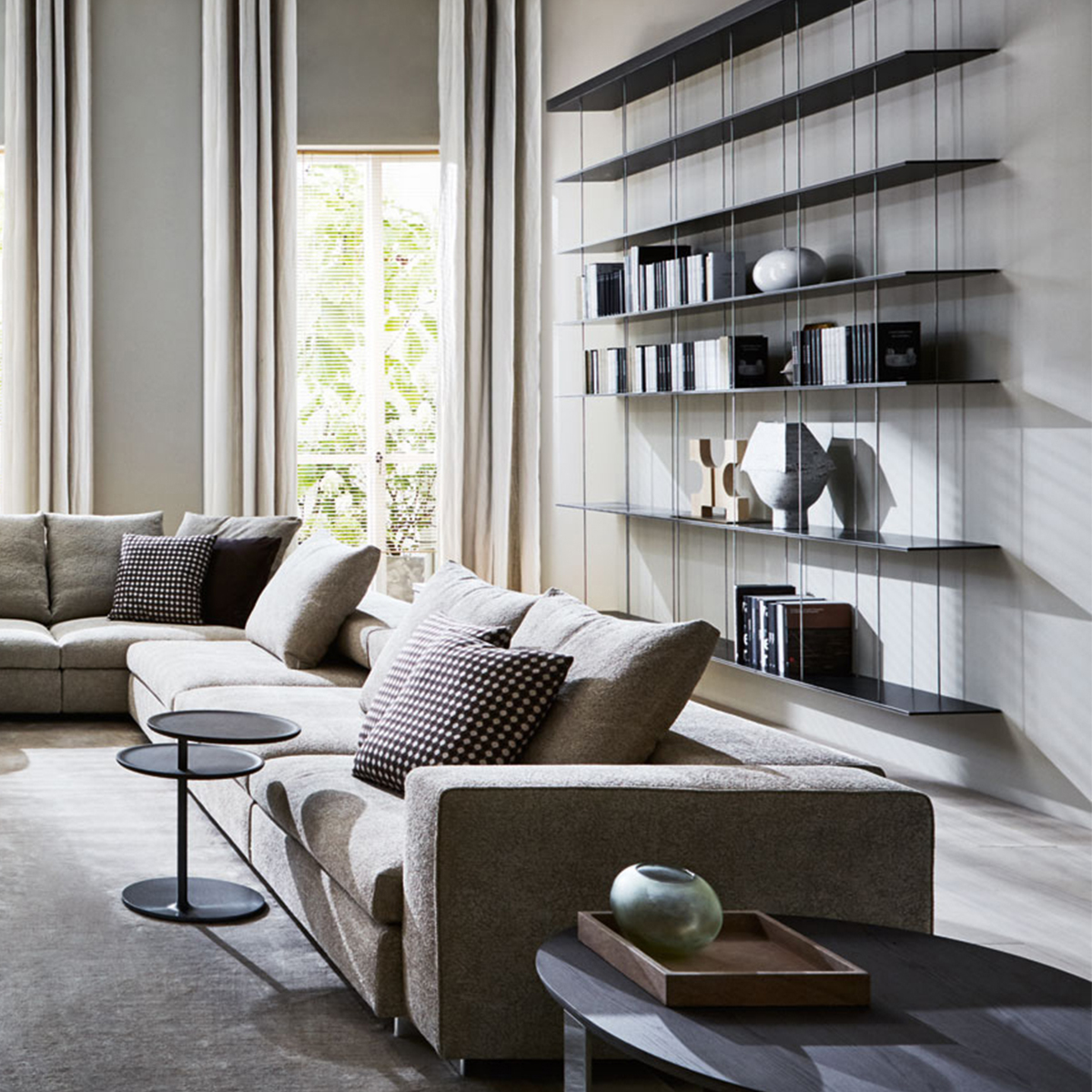 Кроме чистого функционала, у приставных столиков есть и эстетическая составляющая: благодаря своей компактности их можно комбинировать с журнальными столиками и пуфами, создавая многоуровневые композиции, которые добавят в интерьер многослойности.