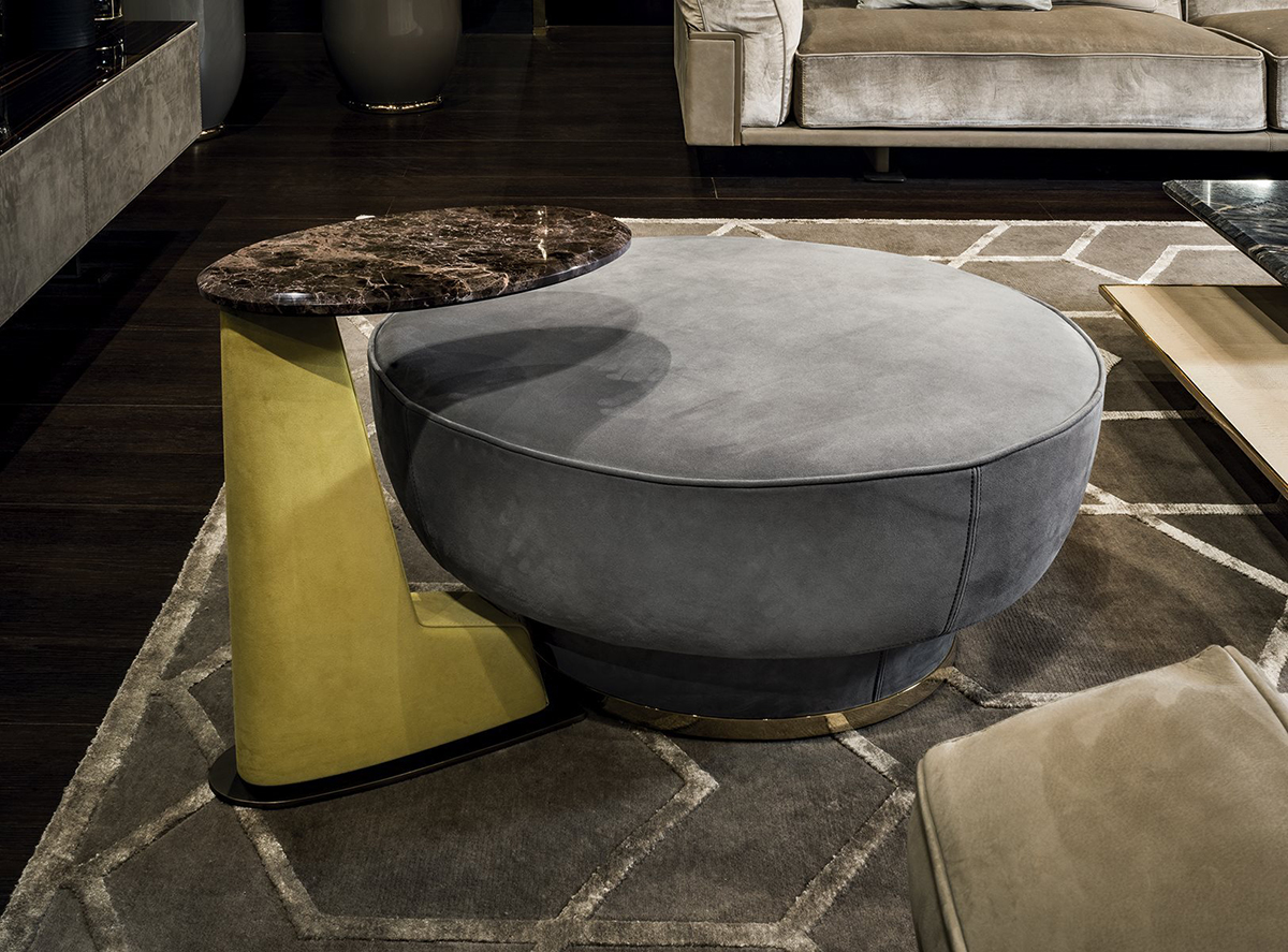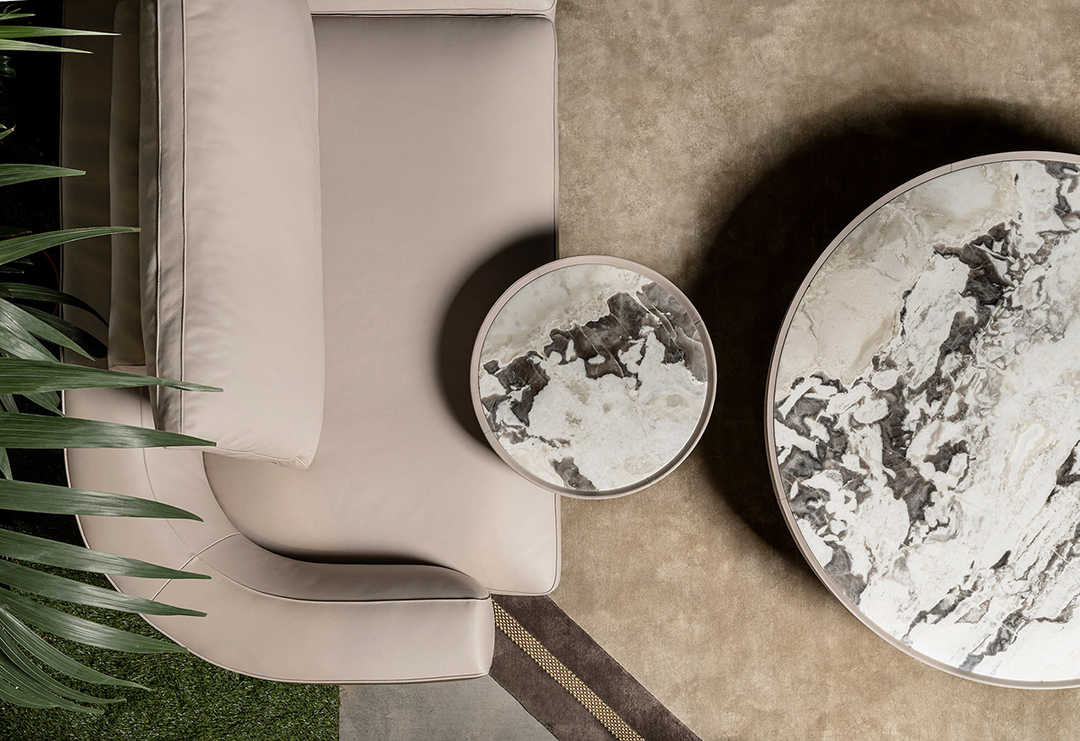 Столик Franky, созданный Фабио Бонфа, легок в использовании и функционален: за счет тонкого основания, смещенного к краю, столик можно придвигать к дивану или кровати вплотную. А за счет продуманной комбинации материалов – мрамора Dover White, мягкой кожи в кремовом оттенке и металлической отделке в цвете шампанского – он еще и невероятно эстетичен.