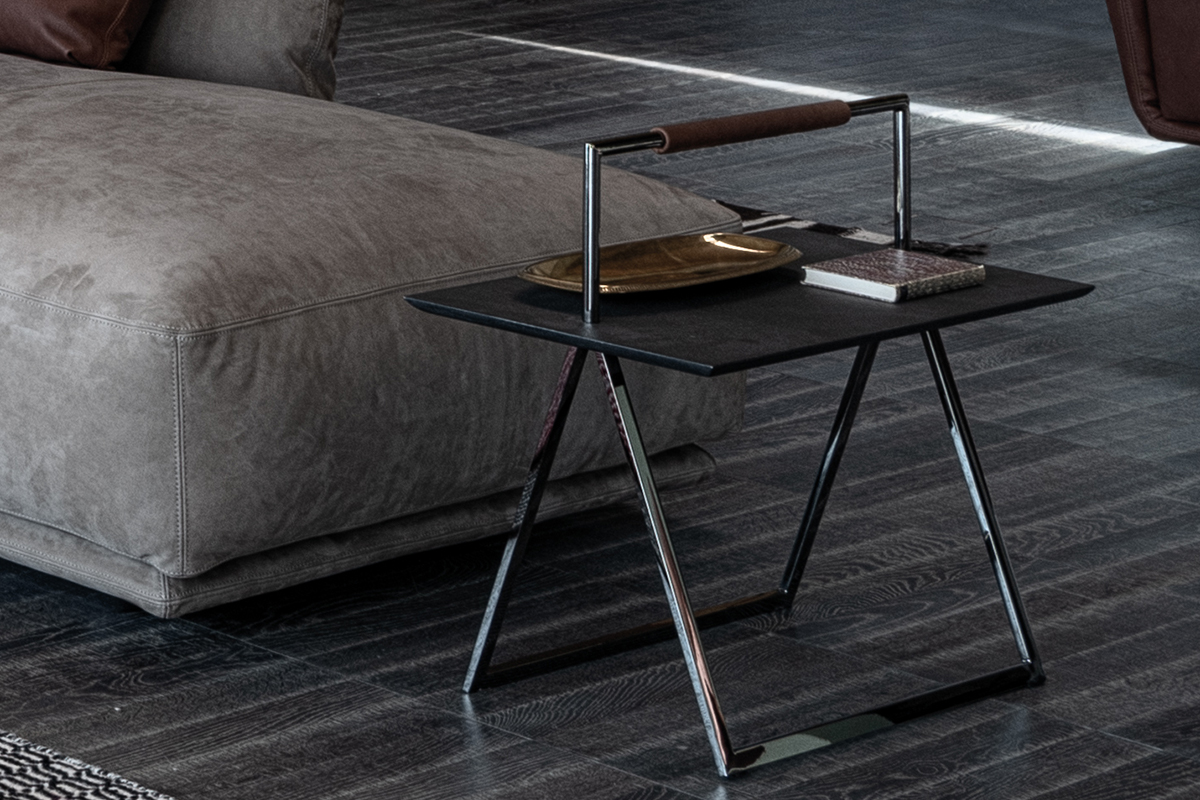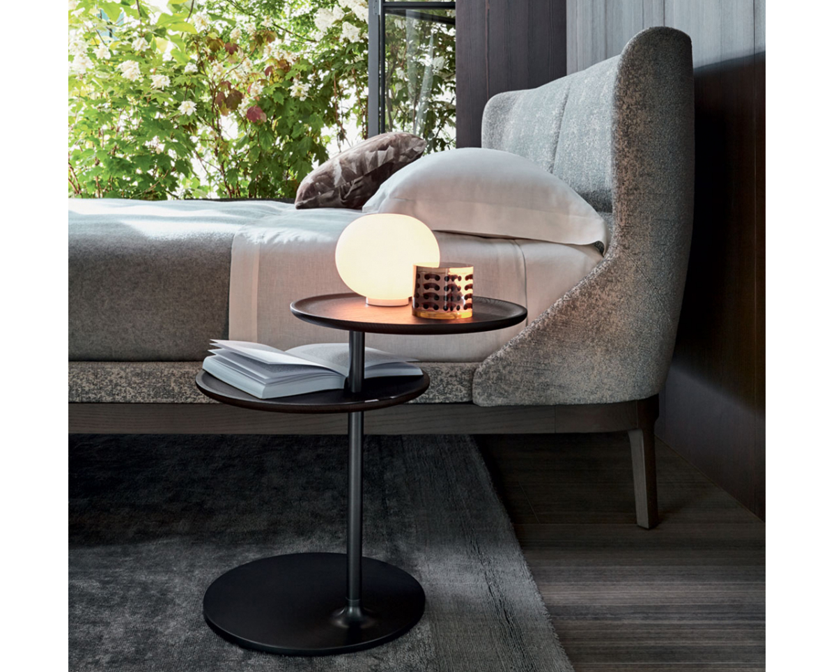 Столик Vicino, разработанный звездным архитектурным бюро Foster+Partners, в основе имеет технологическую составляющую. Две столешницы двигаются, позволяя придвигать то, что необходимо. Стальная конструкция скрывает сложный механизм перемещения, при этом оставаясь тонкой и конструктивно эффективной.
