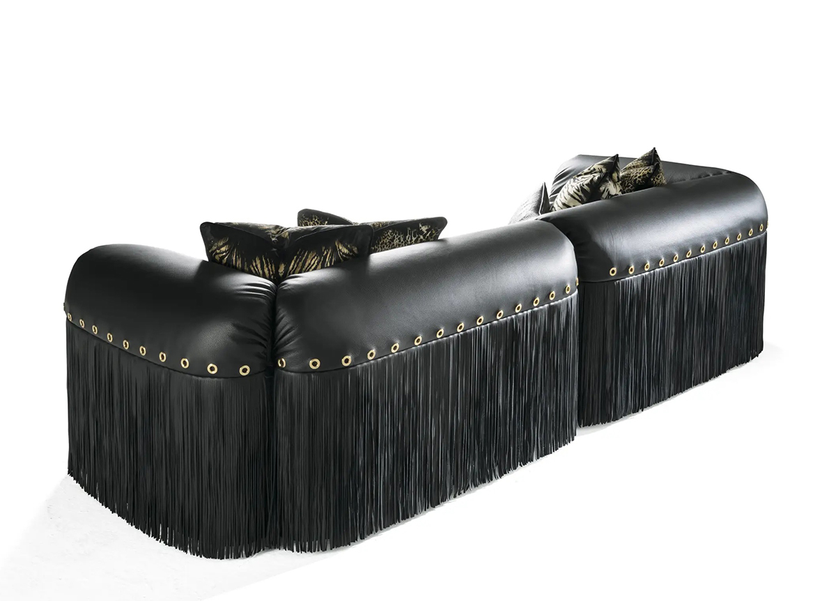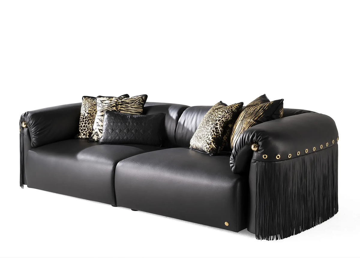 Malawi — уютный, изысканный и очаровательный диван, дизайн которого вдохновлен самой сутью бренда Roberto Cavalli: предмет мебели с женственным силуэтом, который находит свое отражение в плавных линиях и чувственности обивки нежного розового оттенка. Стоит лишь поменять кожаную обивку на черную, как характер предмета меняется на более роковой.Традиции ремесленного производства кожи, еще один характерный элемент итальянского бренда, отражены в декоративной бахроме, украшающей подлокотники и спинку дивана.