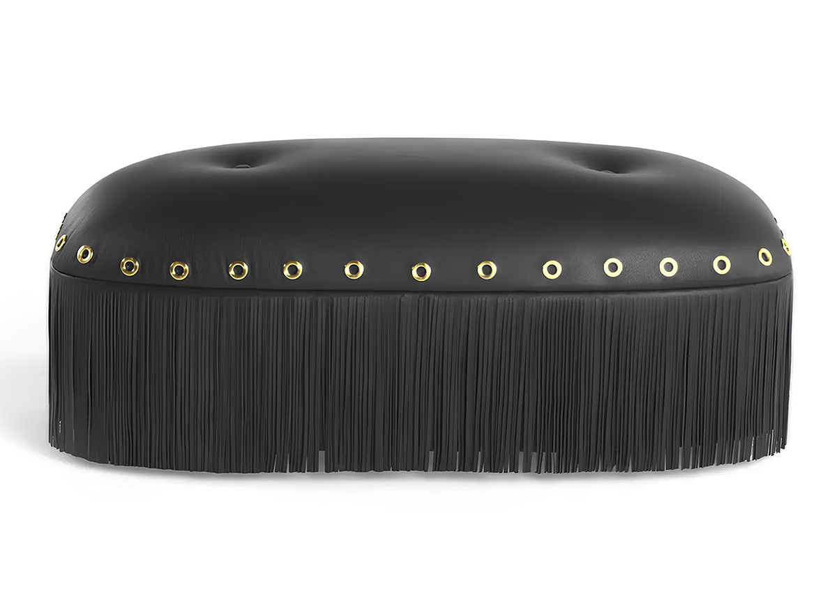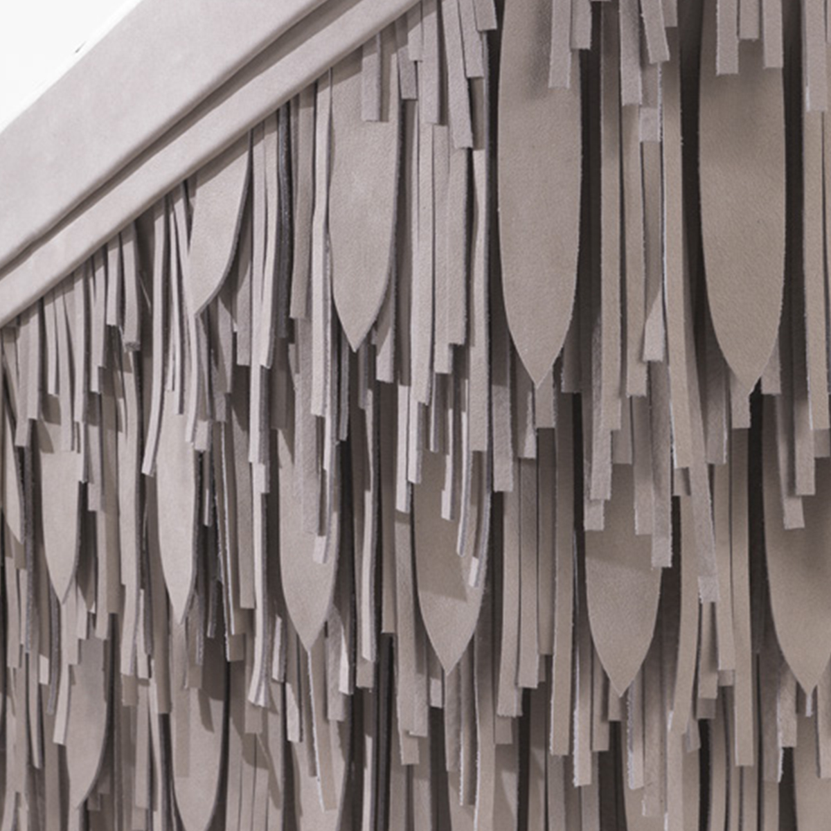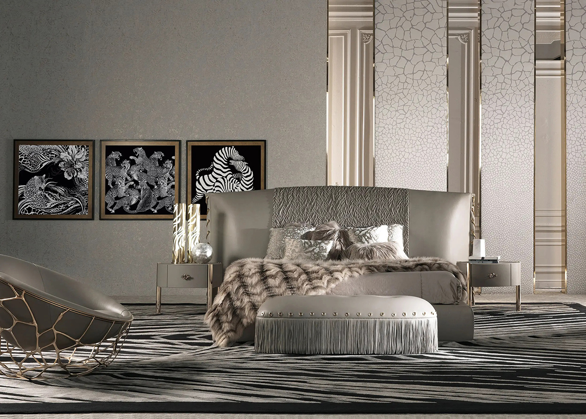 Почему бы не внести нотку игривости в спальню с кроватью Malawi? Периметр основания полностью украшен кожаной бахромой, которая задает ритм и визуальную легкость, уравновешивая две массивные подушки изголовья.БАНКЕТКА MALAWI, ROBERTO CAVALLI HOME INTERIORS