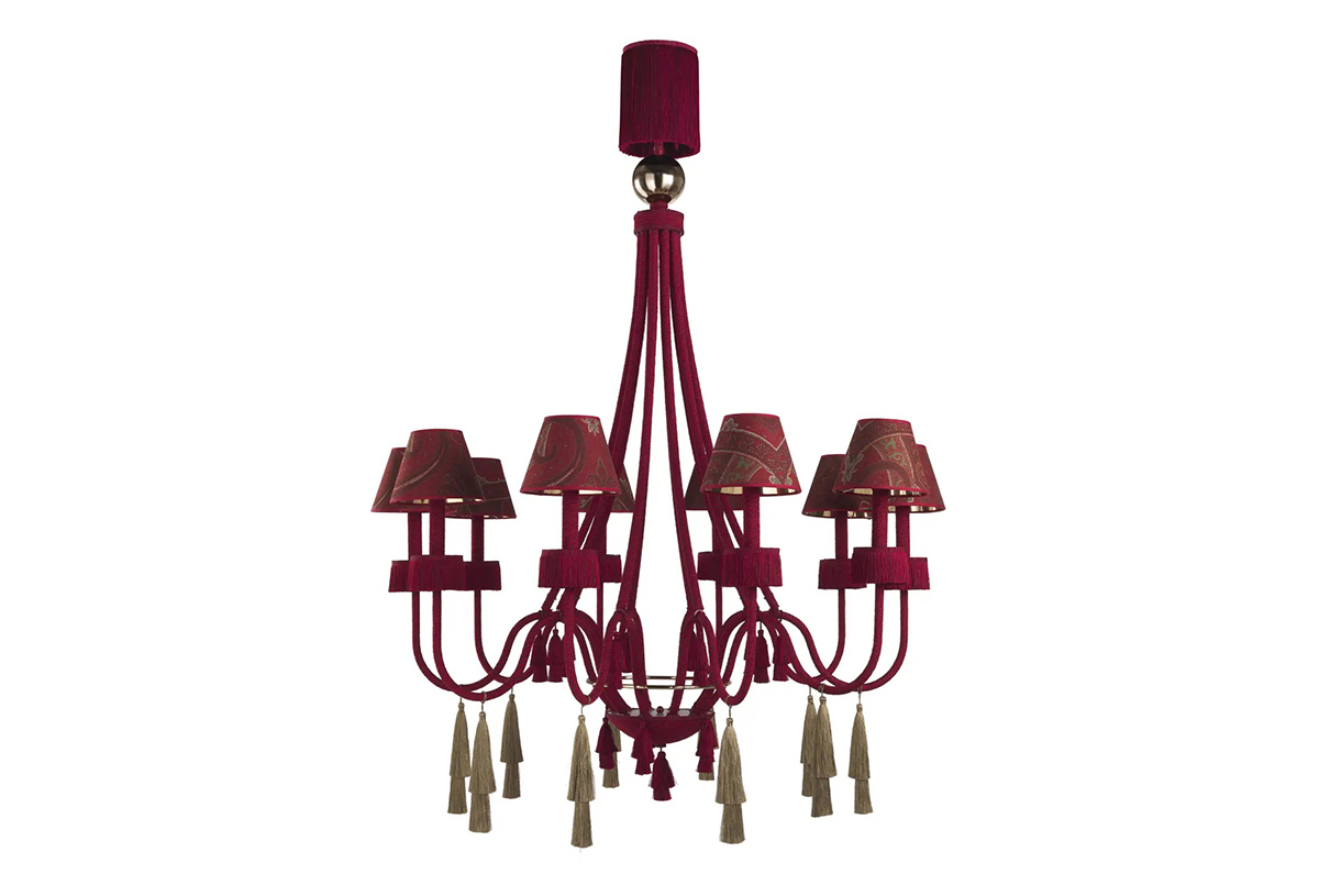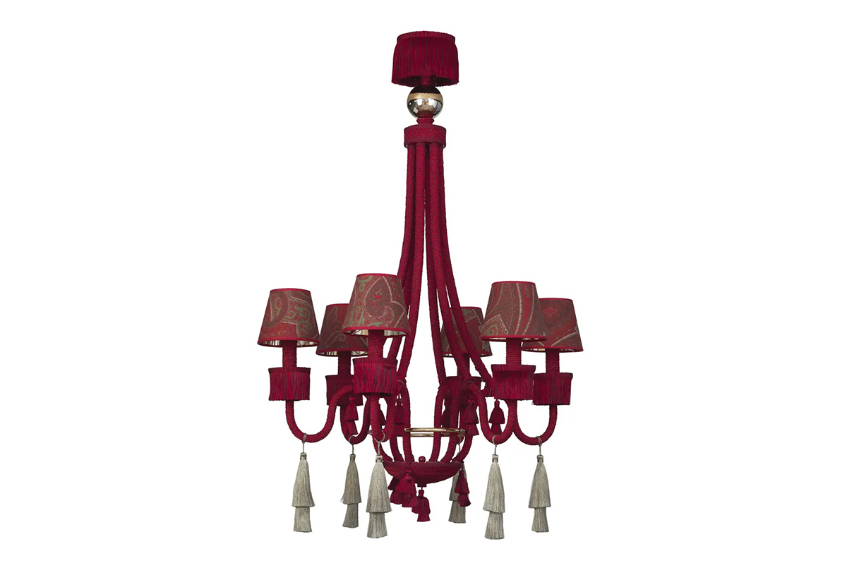 Если в целом бахрома кажется интересным трендом, но вводить ее хочется постепенно, можно обратиться к креслу Shah, воплощающему эклектичную эстетику ETRO Home Interiors. Этнический мотив, заложенный в названии, отсылающем к персидским царям, находит отражение в подушке сиденья, напоминающей османские пуфы, и в основных линиях каркаса. Шелковые кисточки на подушке сиденья добавляют настроения.СВЕТИЛЬНИКИ VISAN, ETRO HOME INTERIORS
