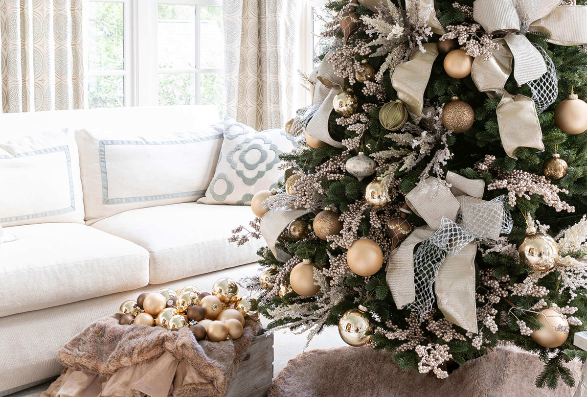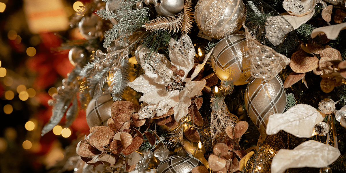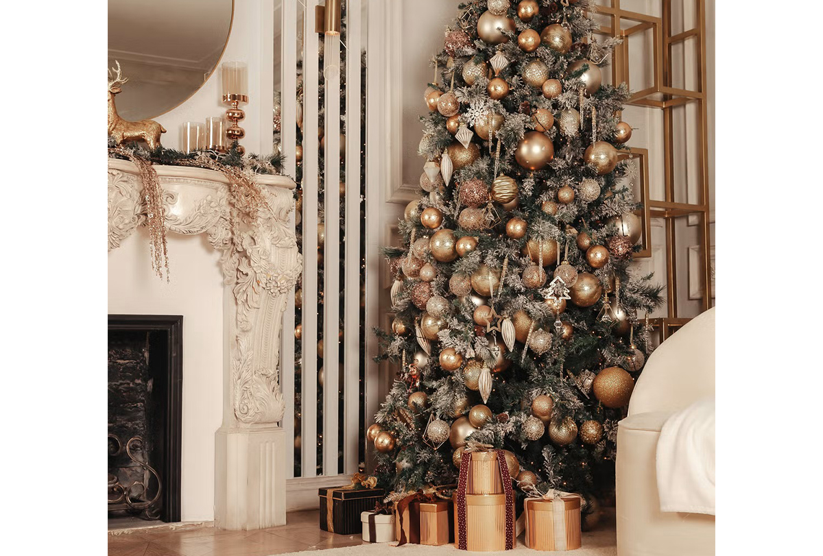Традиционная красно-зеленая гамма с вкраплениями серебра и золота остается неизменной, но в этом году большую популярность приобретают уютные теплые и пряные тона: бежевый, кремовый, серо-коричневый, пудрово-розовый и цвет Pantone 2025 Mocha Mousse. Разбавьте эту нейтральную палитру золотыми или латунными акцентами и наслаждайтесь праздничным уютом.