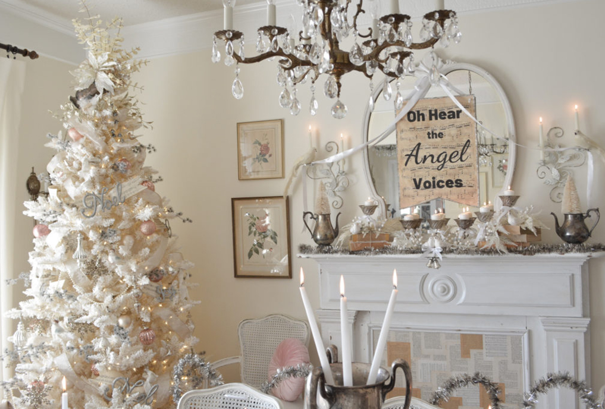 Эффектно смотрится смешивание металлов, например, латунного и хромированного декора, красиво переливающегося в блеске елочных огней и свечей. Можно добавить и аксессуары в отделке состаренной бронзы и даже олова. Смотрится невероятно стильно.