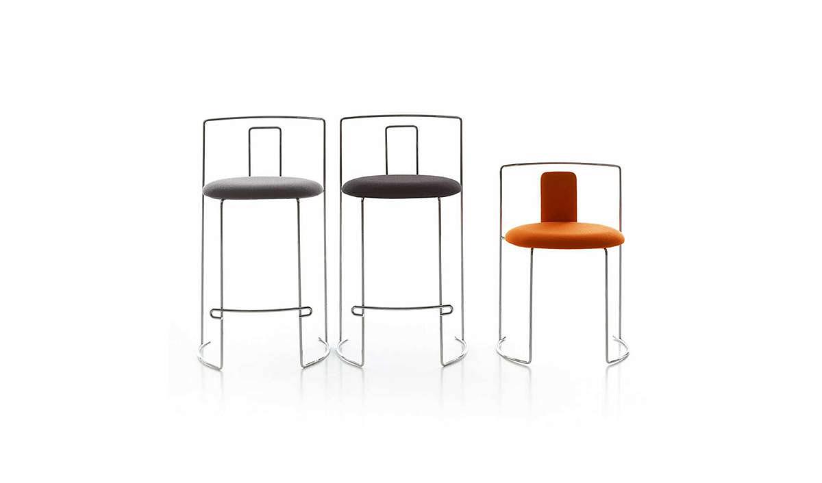 Изящно и невесомо смотрятся барные стулья со спинкой, без подлокотников и на тонких устойчивых ножках.