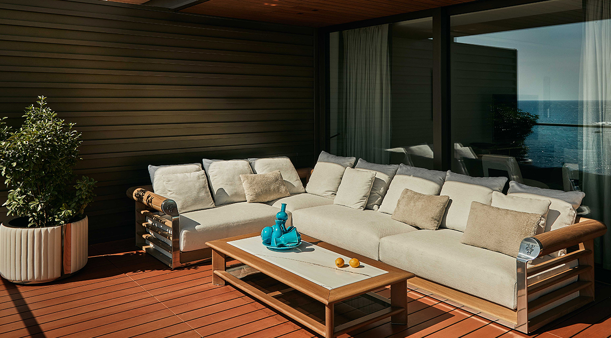 Окруженные пышной зеленью и видом на море, пентхаусы Les Jardins d’Eau демонстрируют элегантность Ривьеры благодаря просторным планировкам и широким террасам. Дизайнерский подход Visionnaire сочетает в себе традиции ремесленного искусства, эксперименты с материалами и современную эстетику, создавая захватывающую атмосферу, где эмоции и индивидуальность формируют жизненный опыт.Уличный модульный диван GALLOWAY, Уличное кресло GALLOWAY, Уличный журнальный столик GALLOWAY