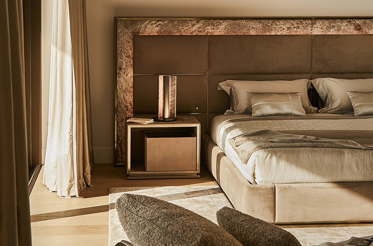 На втором этаже — главная спальня с кроватью Audabe. Отсюда открывается выход на бельведер с захватывающим видом на Монакскую Ривьеру.