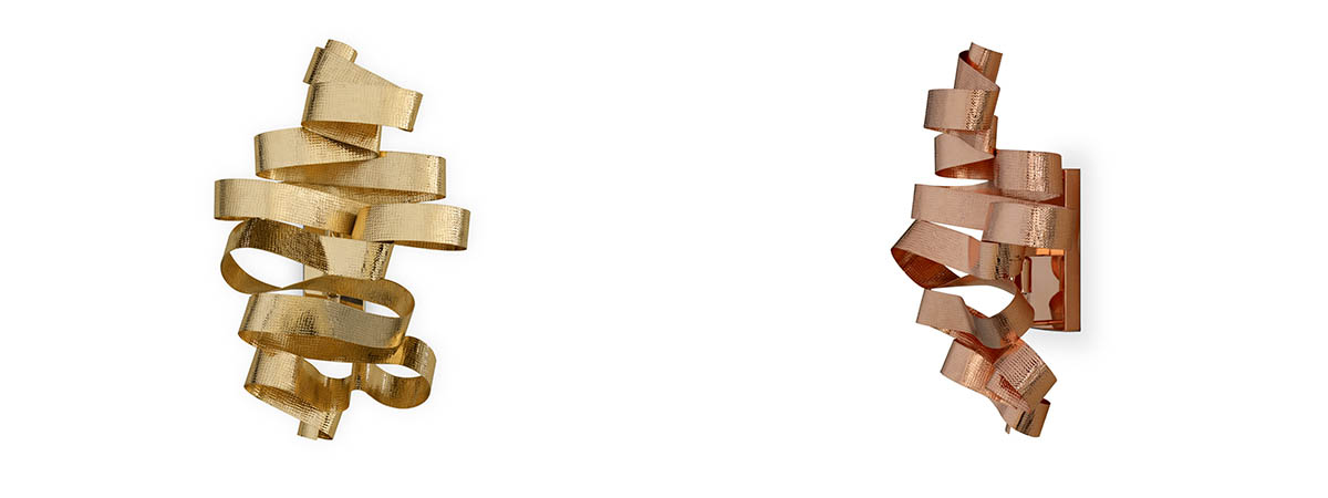 Пентхаус в Польше превратился в культовую интерпретацию стиля ар-деко. Черно-белые геометрические узоры на полу контрастируют с мягкими золотыми линиями мебели. Бра Chloe привносит теплую игру изгибов и поворотов в окружение монохромного глянца.